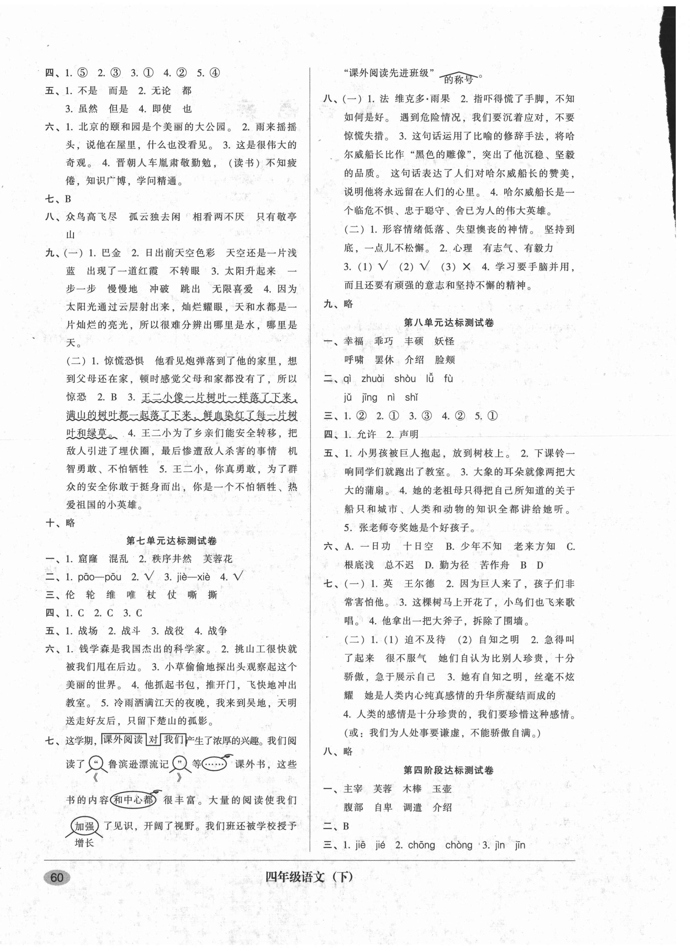 2021年第二课堂单元模拟试卷四年级语文下册人教版