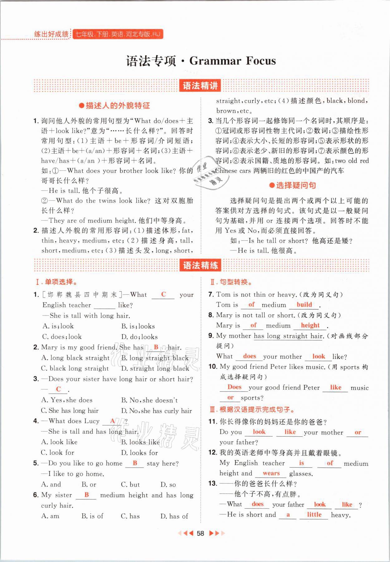 注:目前有些书本章节名称可能整理的还不是很完善,但都是按照顺序排列的,请同学们按照顺序仔细查找。练习册 2021年练出好成绩七年级英语下册人教版河北专版 答案主要是用来给同学们做完题方便对答案用的,请勿直接抄袭。