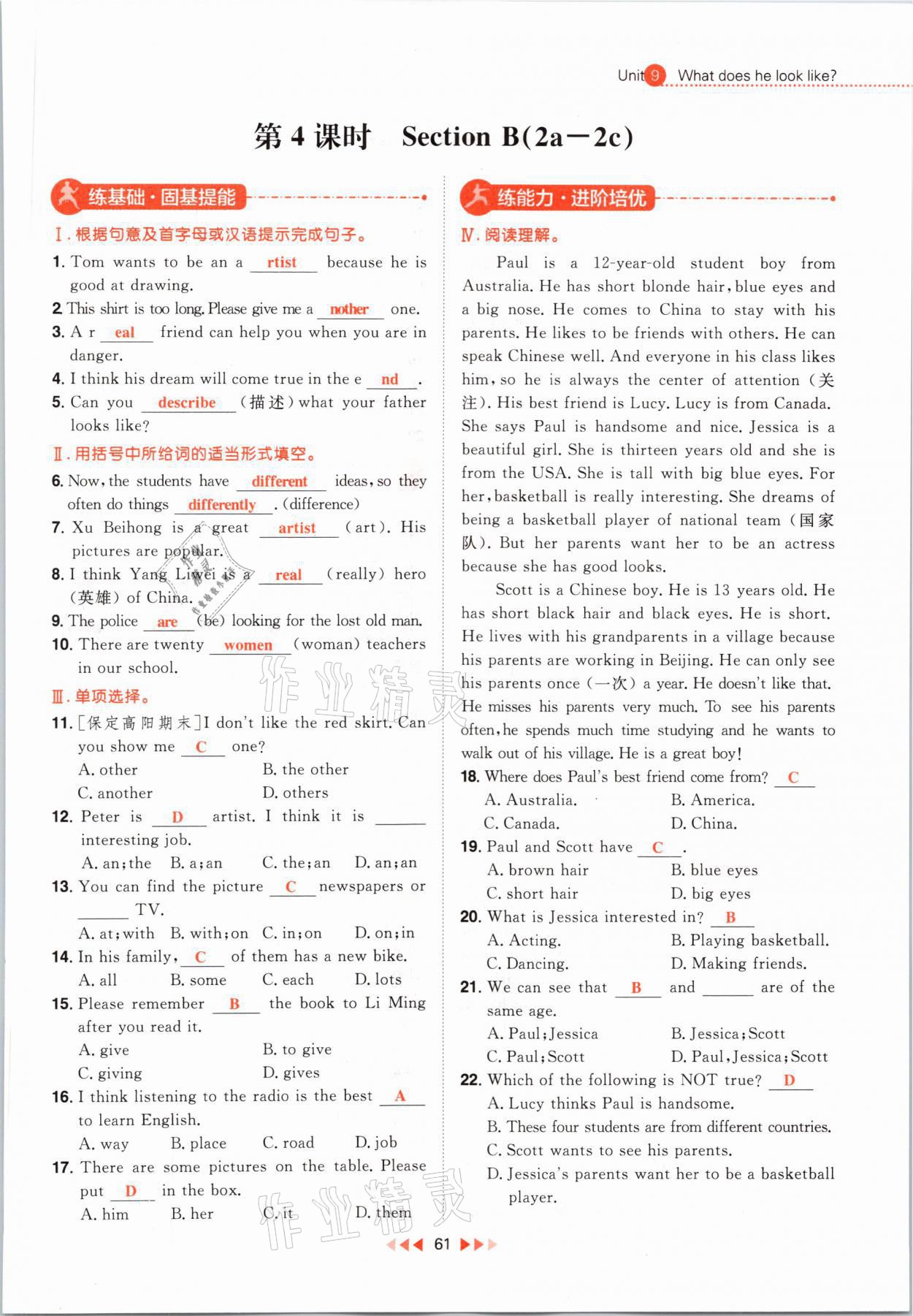 注:目前有些书本章节名称可能整理的还不是很完善,但都是按照顺序排列的,请同学们按照顺序仔细查找。练习册 2021年练出好成绩七年级英语下册人教版河北专版 答案主要是用来给同学们做完题方便对答案用的,请勿直接抄袭。