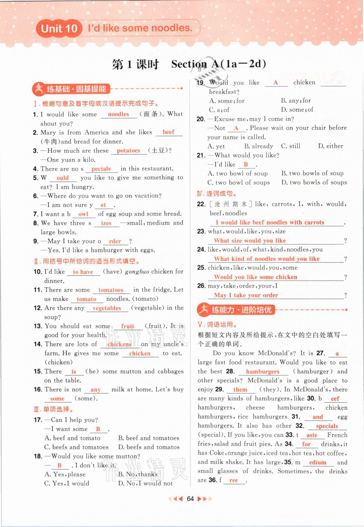 注:目前有些书本章节名称可能整理的还不是很完善,但都是按照顺序排列的,请同学们按照顺序仔细查找。练习册 2021年练出好成绩七年级英语下册人教版河北专版 答案主要是用来给同学们做完题方便对答案用的,请勿直接抄袭。