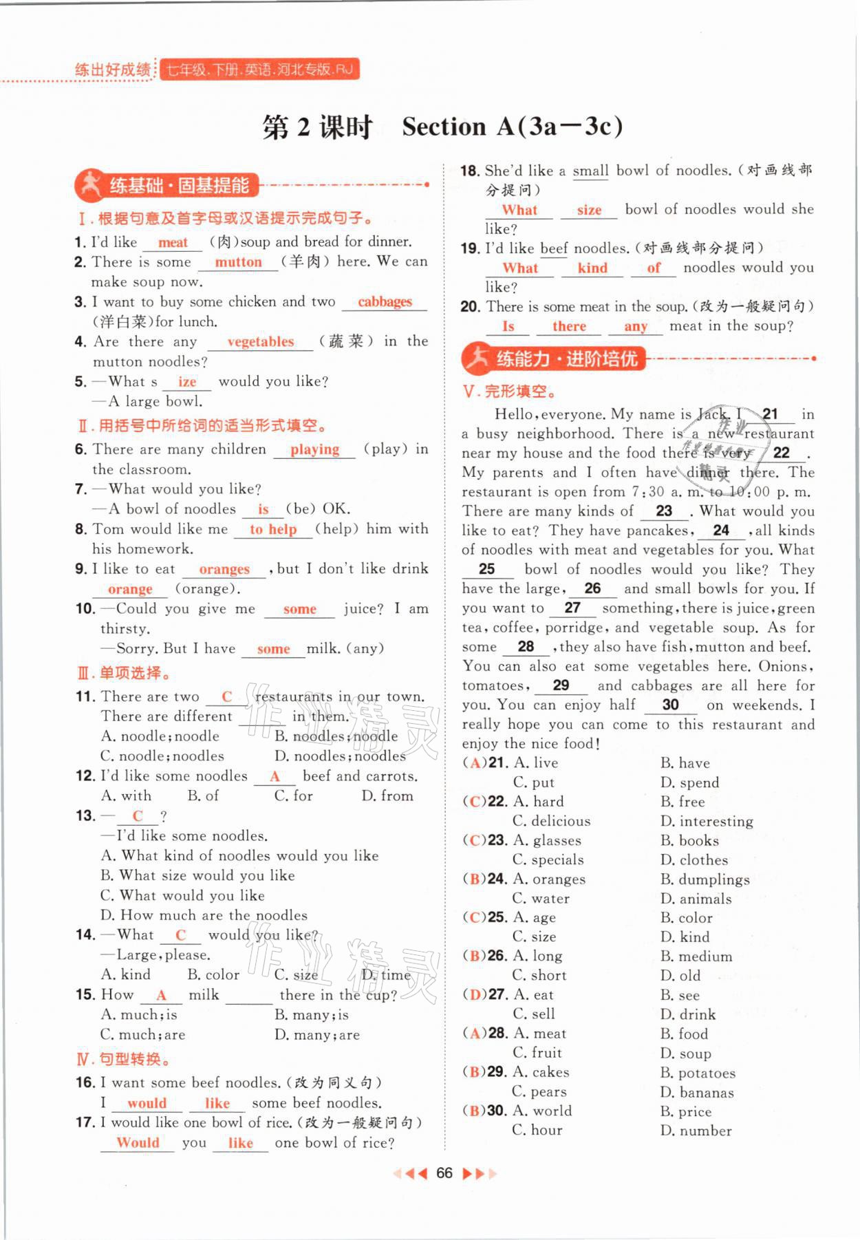 注:目前有些书本章节名称可能整理的还不是很完善,但都是按照顺序排列的,请同学们按照顺序仔细查找。练习册 2021年练出好成绩七年级英语下册人教版河北专版 答案主要是用来给同学们做完题方便对答案用的,请勿直接抄袭。