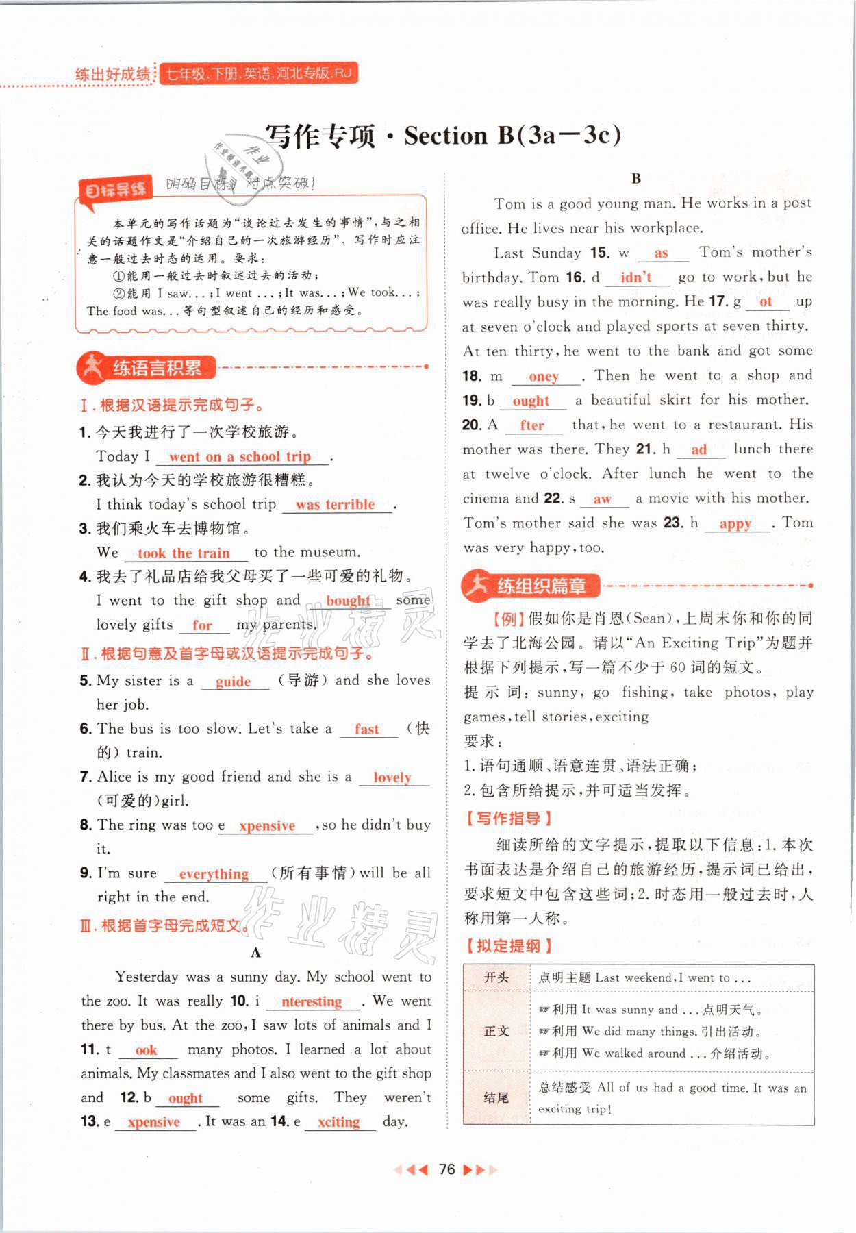 注:目前有些书本章节名称可能整理的还不是很完善,但都是按照顺序排列的,请同学们按照顺序仔细查找。练习册 2021年练出好成绩七年级英语下册人教版河北专版 答案主要是用来给同学们做完题方便对答案用的,请勿直接抄袭。