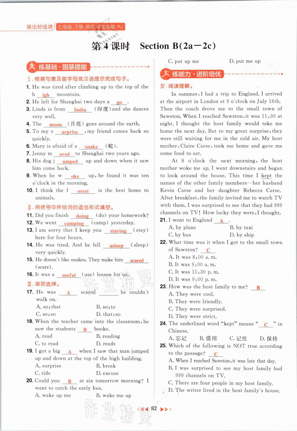 注:目前有些书本章节名称可能整理的还不是很完善,但都是按照顺序排列的,请同学们按照顺序仔细查找。练习册 2021年练出好成绩七年级英语下册人教版河北专版 答案主要是用来给同学们做完题方便对答案用的,请勿直接抄袭。