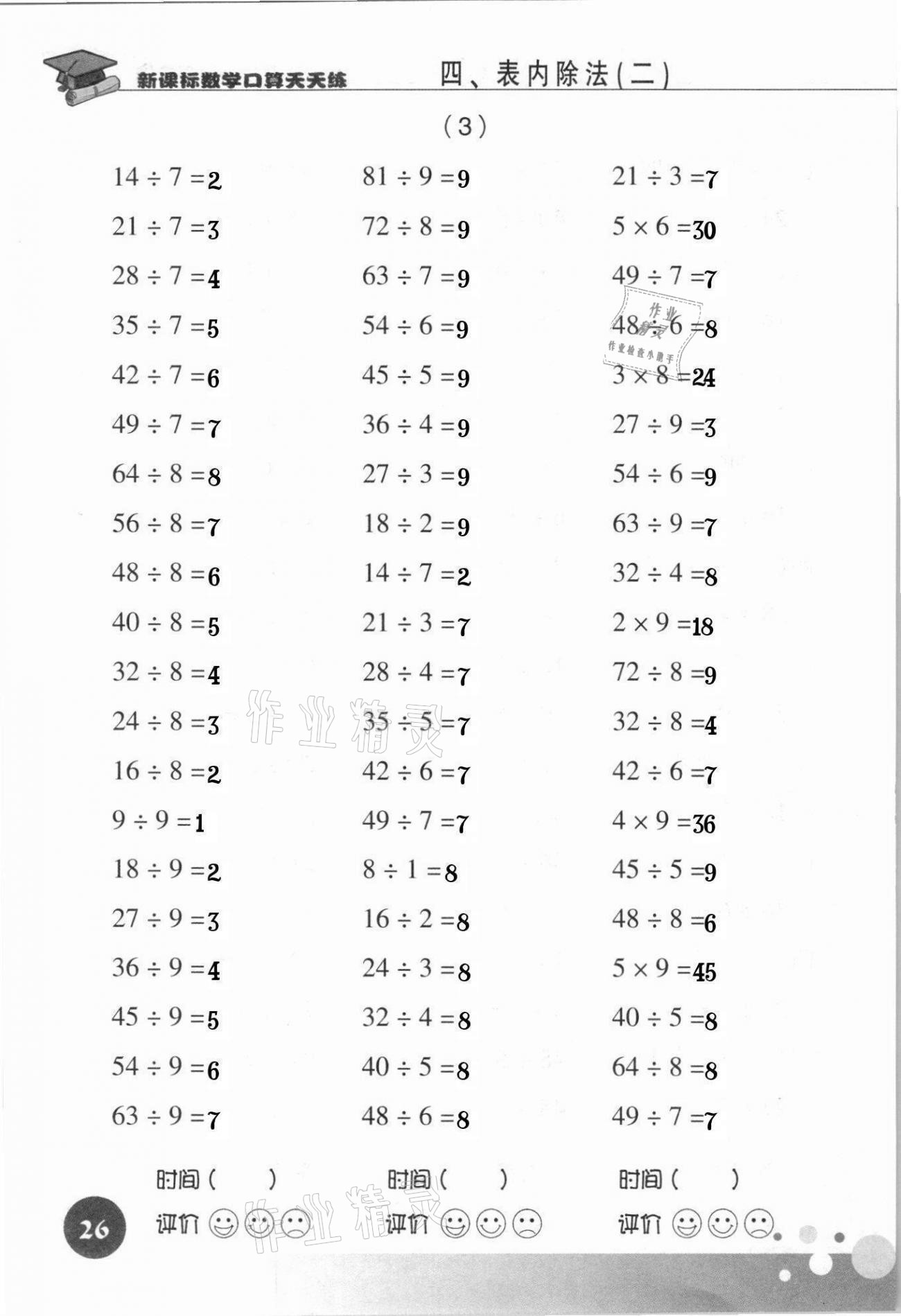 注:目前有些书本章节名称可能整理的还不是很完善,但都是按照顺序排列的,请同学们按照顺序仔细查找。练习册 2021年新课标数学口算天天练二年级下册人教版 答案主要是用来给同学们做完题方便对答案用的,请勿直接抄袭。