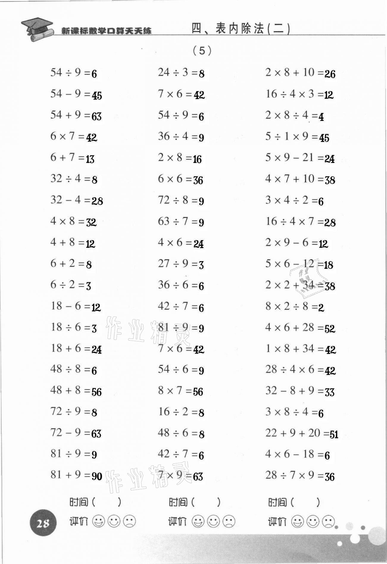 注:目前有些书本章节名称可能整理的还不是很完善,但都是按照顺序排列的,请同学们按照顺序仔细查找。练习册 2021年新课标数学口算天天练二年级下册人教版 答案主要是用来给同学们做完题方便对答案用的,请勿直接抄袭。