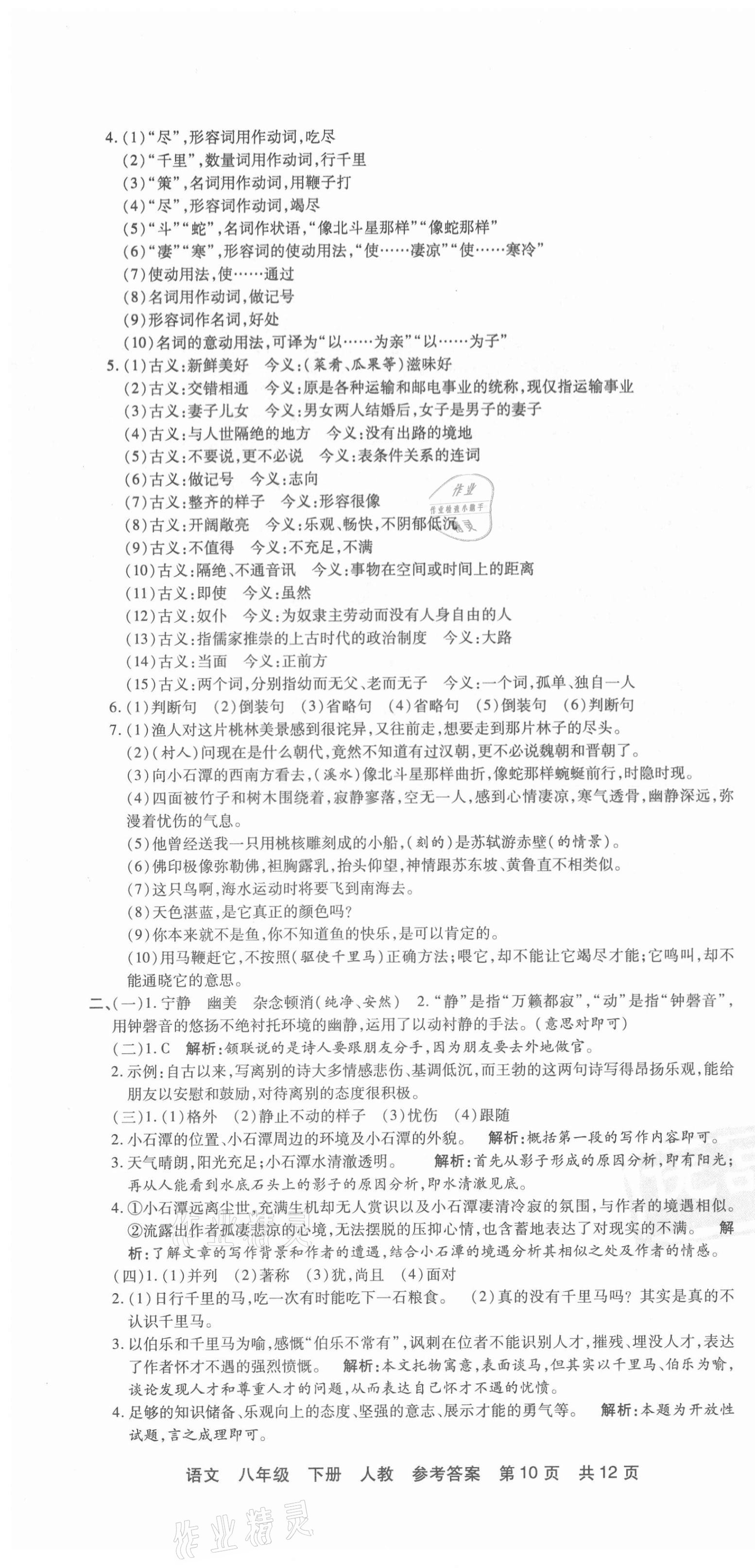 注:目前有些书本章节名称可能整理的还不是很完善,但都是按照顺序排列的,请同学们按照顺序仔细查找。练习册 2021年优品单元与期末八年级语文下册人教版 答案主要是用来给同学们做完题方便对答案用的,请勿直接抄袭。