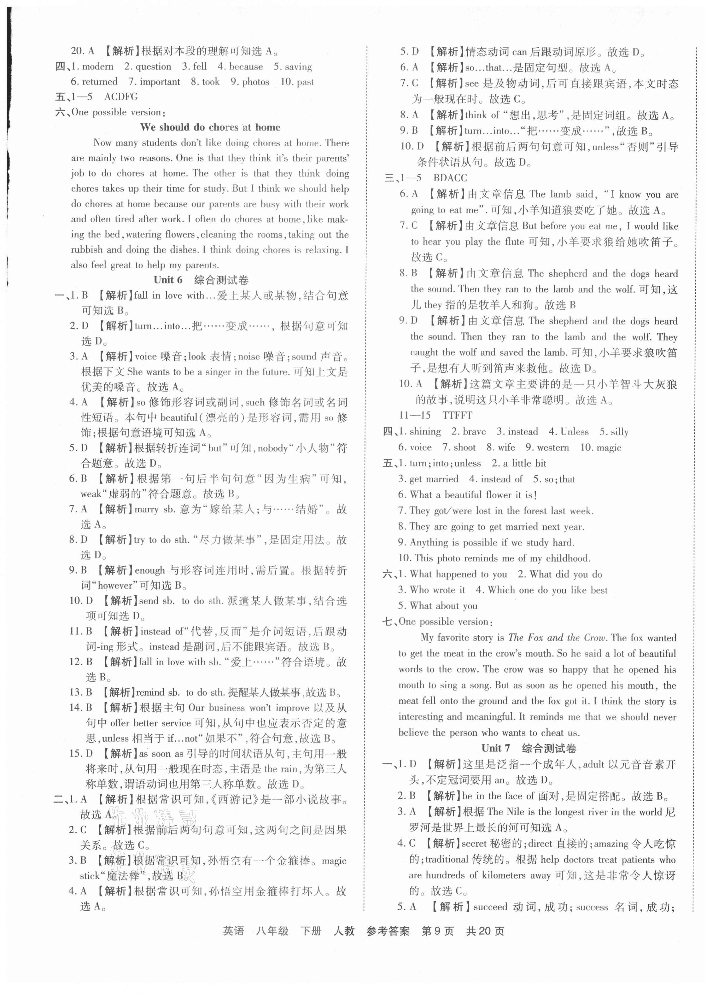 注:目前有些书本章节名称可能整理的还不是很完善,但都是按照顺序排列的,请同学们按照顺序仔细查找。练习册 2021年优品单元与期末八年级英语下册人教版 答案主要是用来给同学们做完题方便对答案用的,请勿直接抄袭。