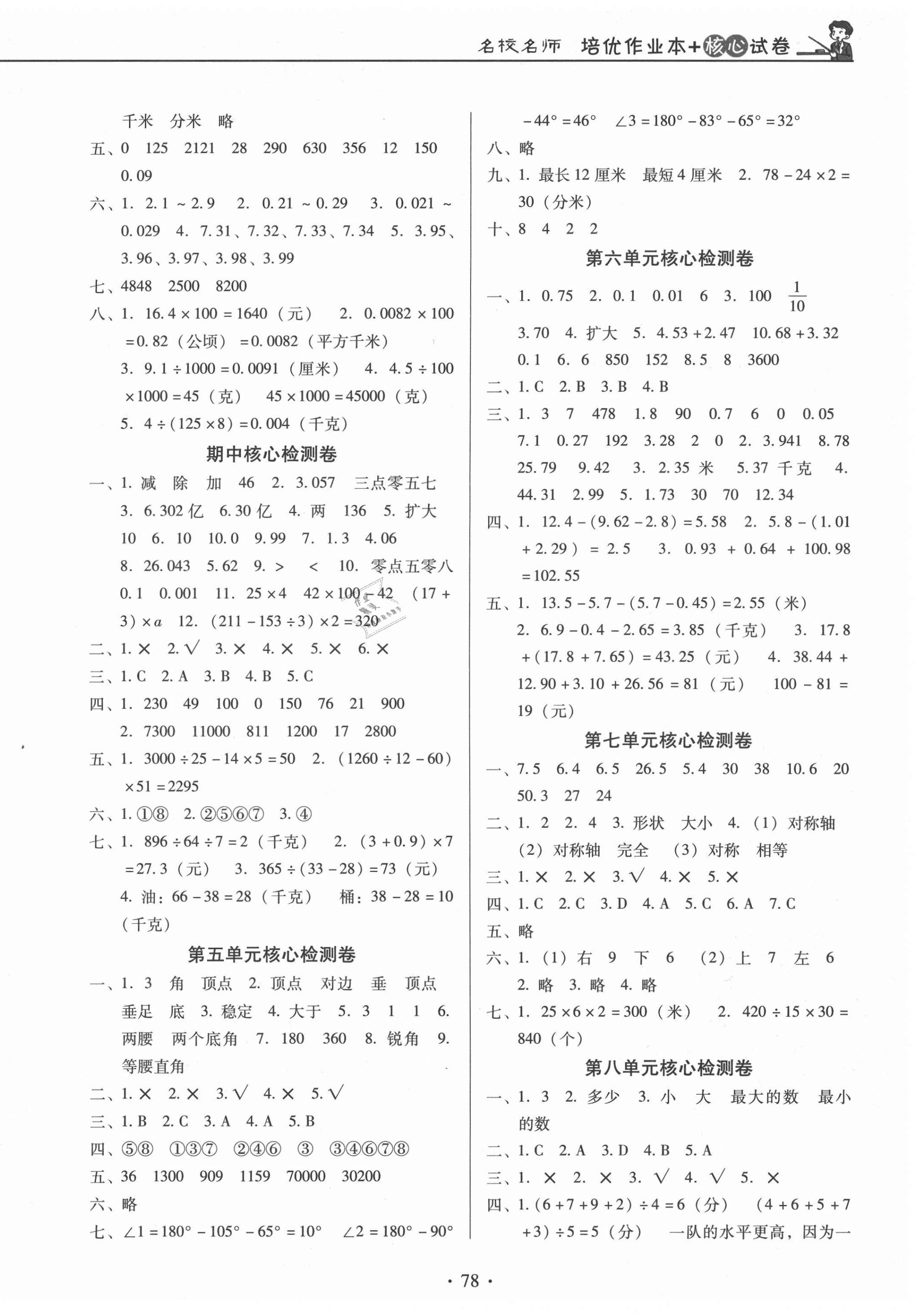 注:目前有些书本章节名称可能整理的还不是很完善,但都是按照顺序排列的,请同学们按照顺序仔细查找。练习册 2021年名校名师培优作业本加核心试卷四年级数学下册人教版 答案主要是用来给同学们做完题方便对答案用的,请勿直接抄袭。