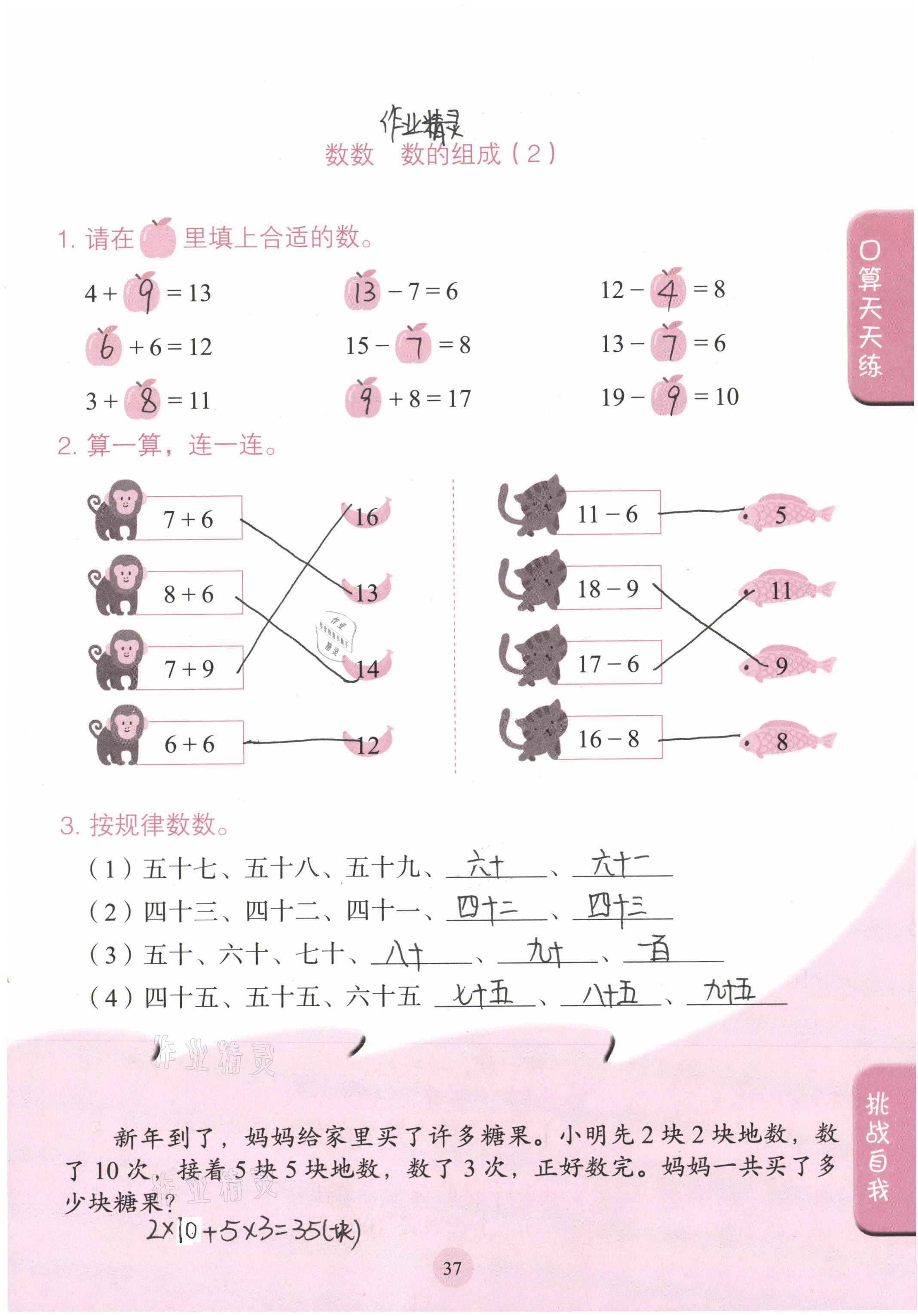 注:目前有些书本章节名称可能整理的还不是很完善,但都是按照顺序排列的,请同学们按照顺序仔细查找。练习册 2021年口算小状元一年级数学下册人民教育出版社 答案主要是用来给同学们做完题方便对答案用的,请勿直接抄袭。