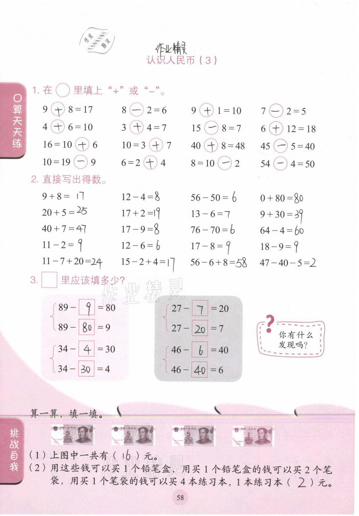 注:目前有些书本章节名称可能整理的还不是很完善,但都是按照顺序排列的,请同学们按照顺序仔细查找。练习册 2021年口算小状元一年级数学下册人民教育出版社 答案主要是用来给同学们做完题方便对答案用的,请勿直接抄袭。