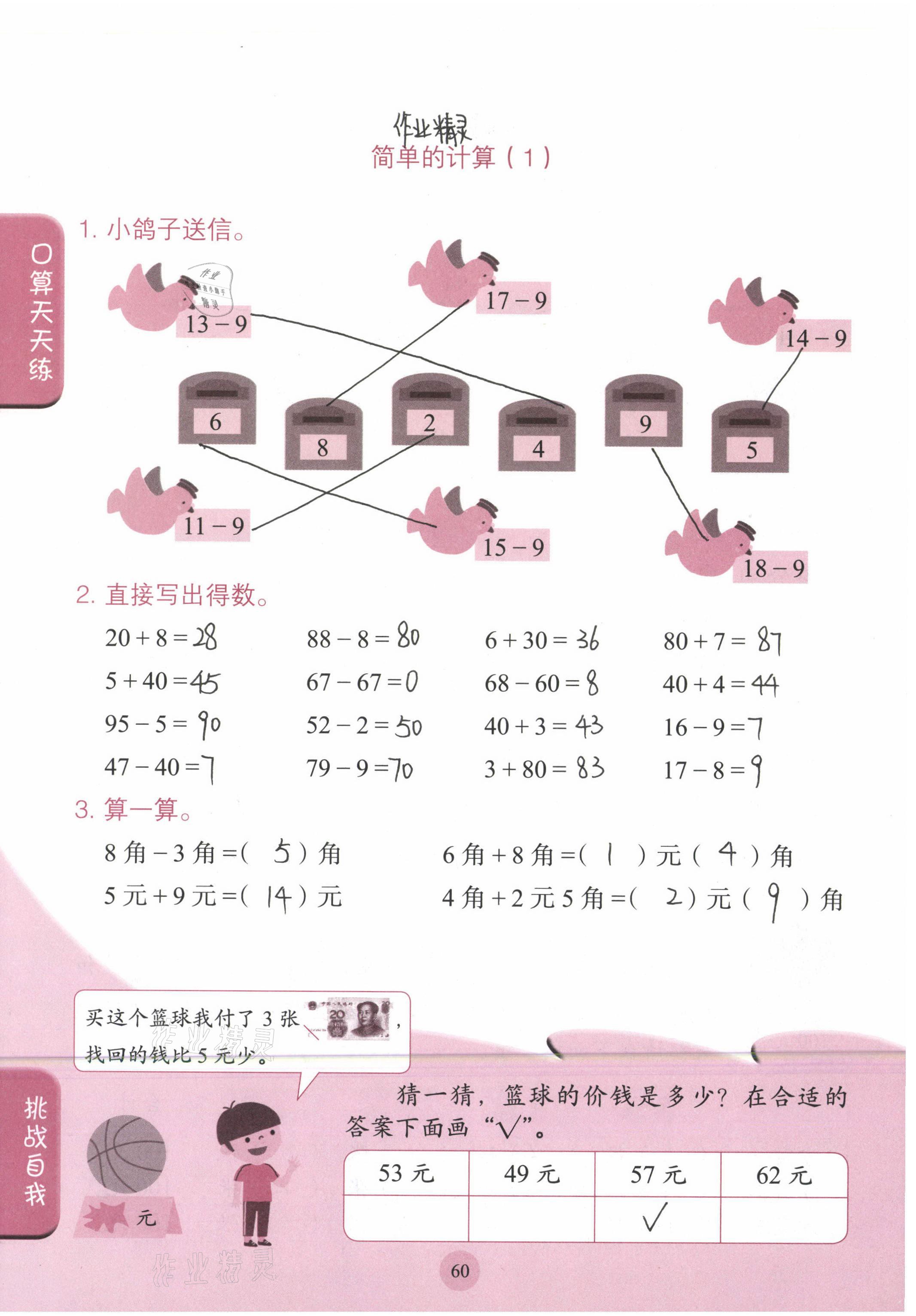 注:目前有些书本章节名称可能整理的还不是很完善,但都是按照顺序排列的,请同学们按照顺序仔细查找。练习册 2021年口算小状元一年级数学下册人民教育出版社 答案主要是用来给同学们做完题方便对答案用的,请勿直接抄袭。