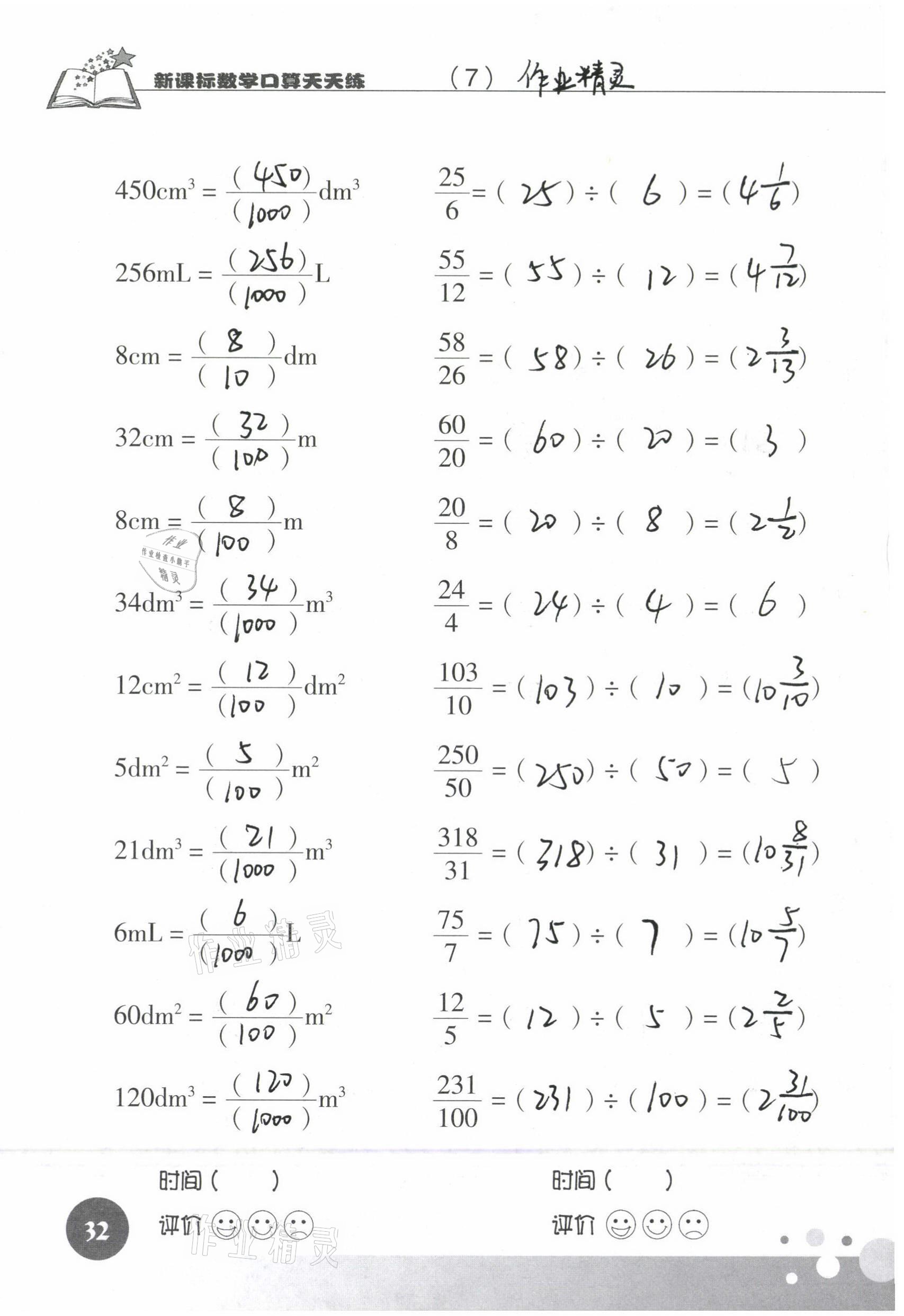 注:目前有些书本章节名称可能整理的还不是很完善,但都是按照顺序排列的,请同学们按照顺序仔细查找。练习册 2021年新课标数学口算天天练五年级下册人教版 答案主要是用来给同学们做完题方便对答案用的,请勿直接抄袭。