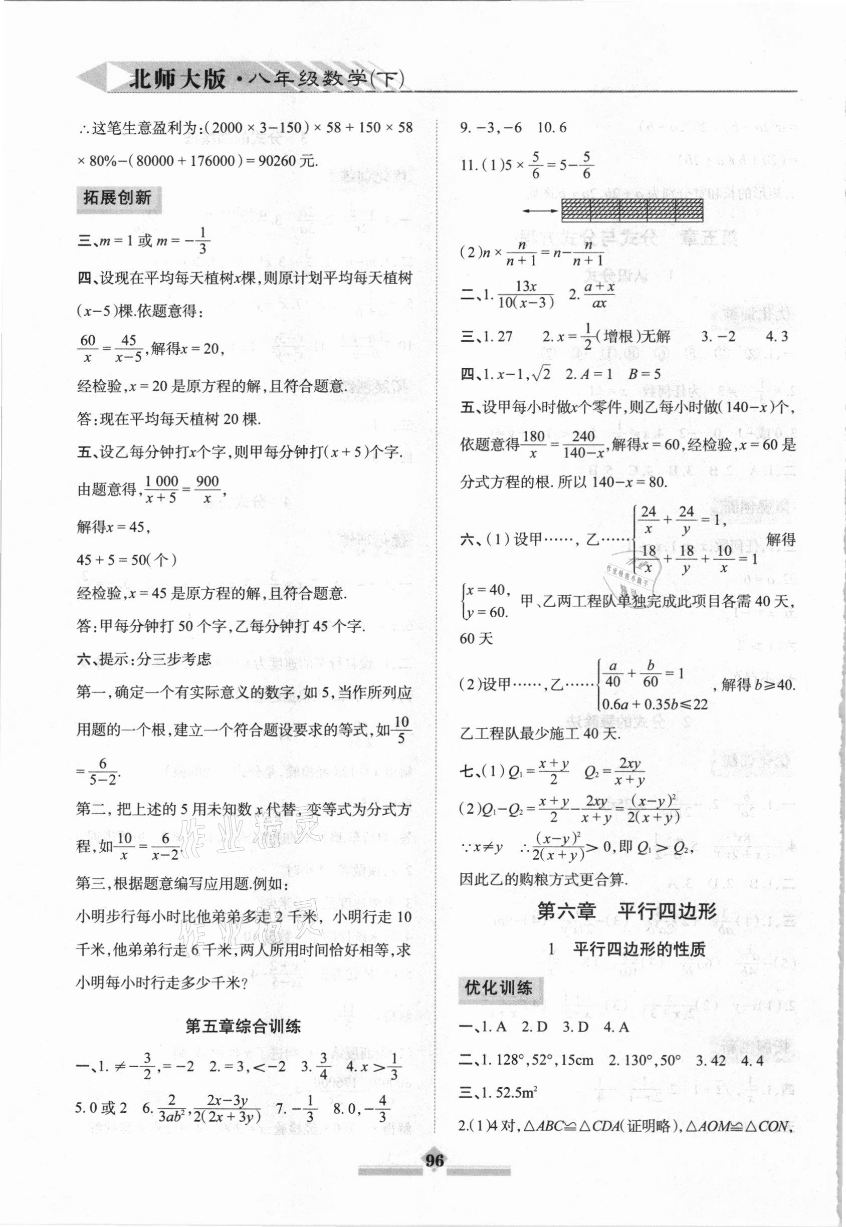 《2021年同步拓展与训练八年级数学下册北师大版》