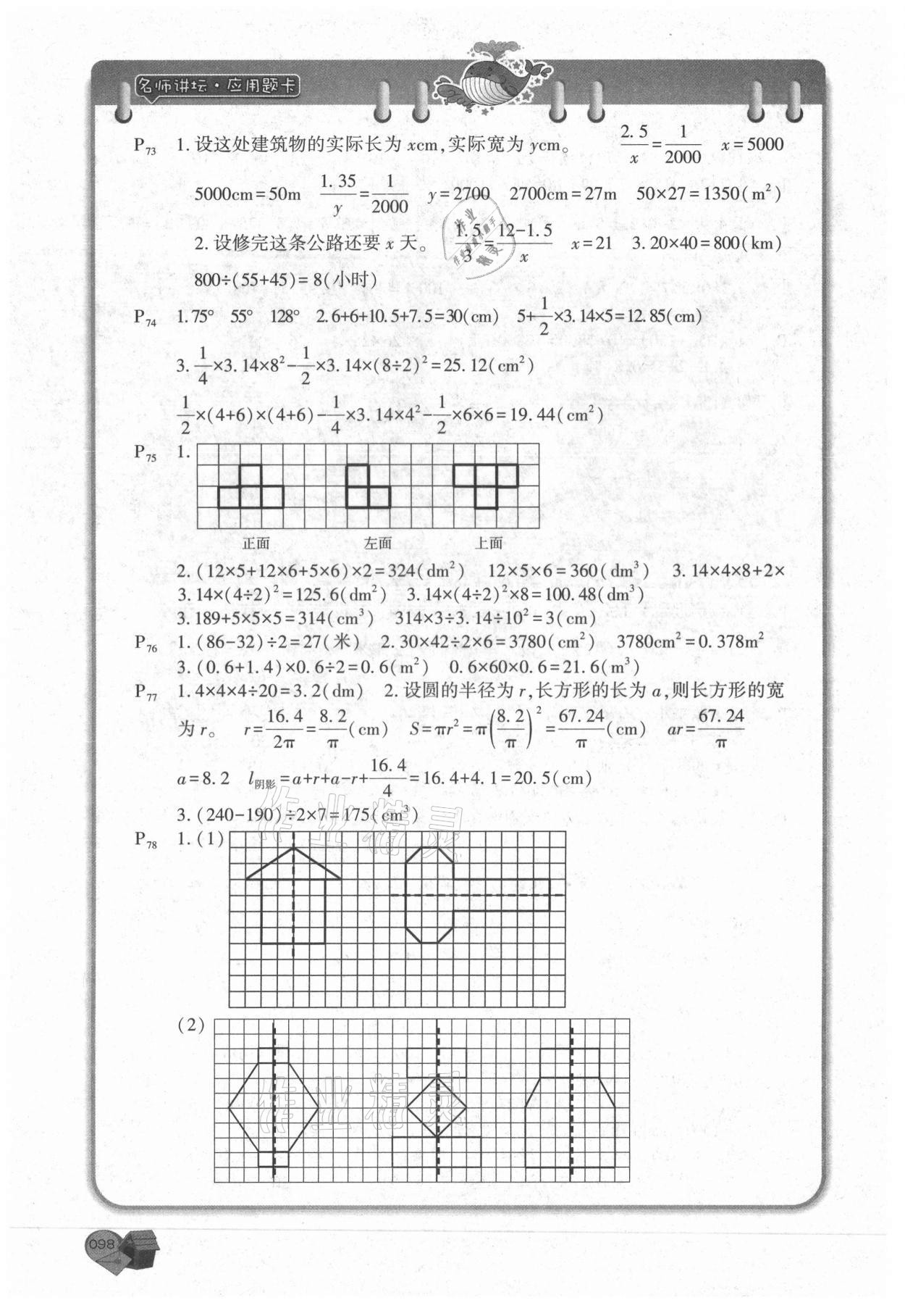 注:目前有些书本章节名称可能整理的还不是很完善,但都是按照顺序排列的,请同学们按照顺序仔细查找。练习册 2021年名师讲坛应用题卡六年级数学下册 答案主要是用来给同学们做完题方便对答案用的,请勿直接抄袭。