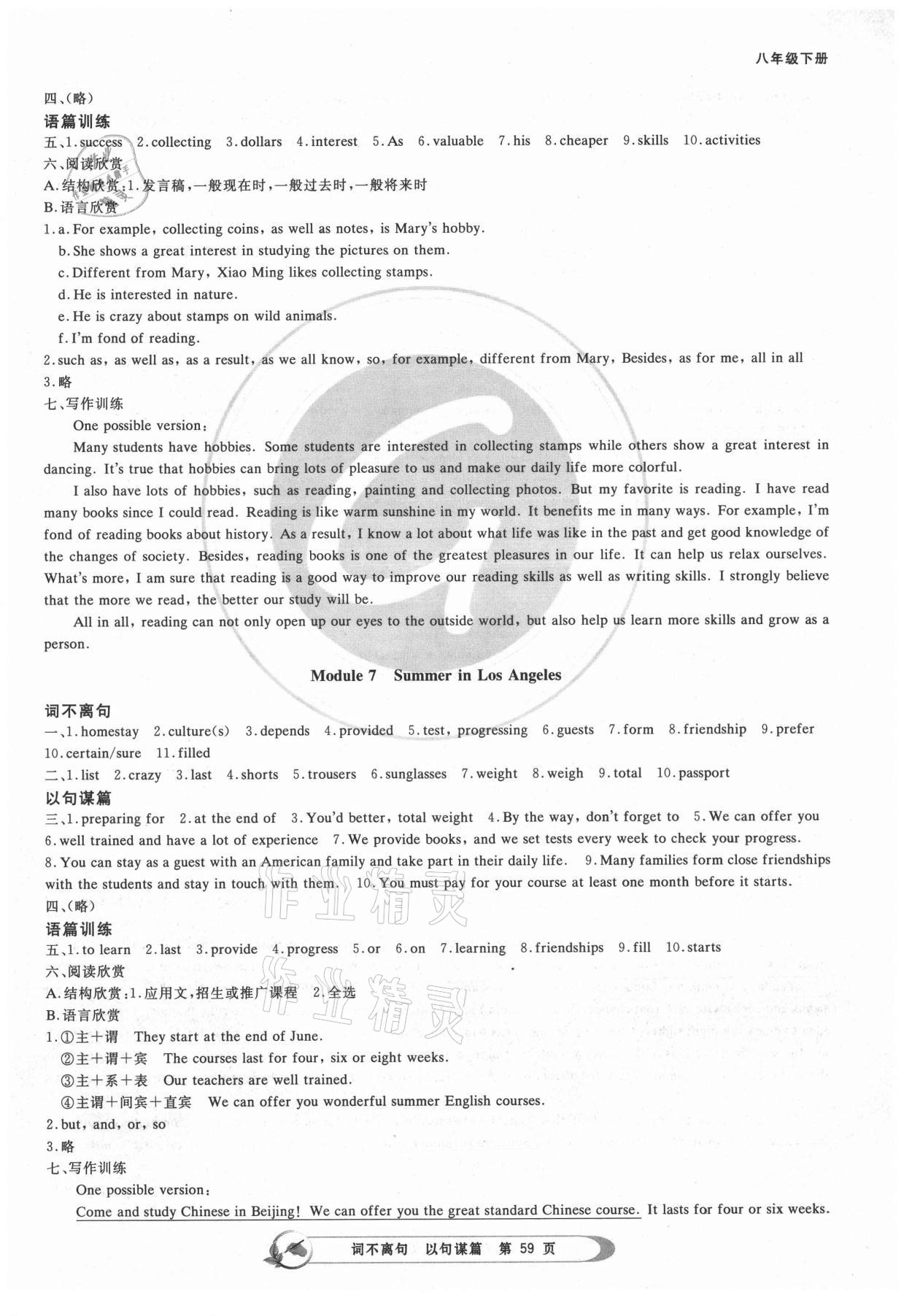 注:目前有些书本章节名称可能整理的还不是很完善,但都是按照顺序排列的,请同学们按照顺序仔细查找。练习册 2021年词不离句以句谋篇模块书面表达训练八年级下册 答案主要是用来给同学们做完题方便对答案用的,请勿直接抄袭。