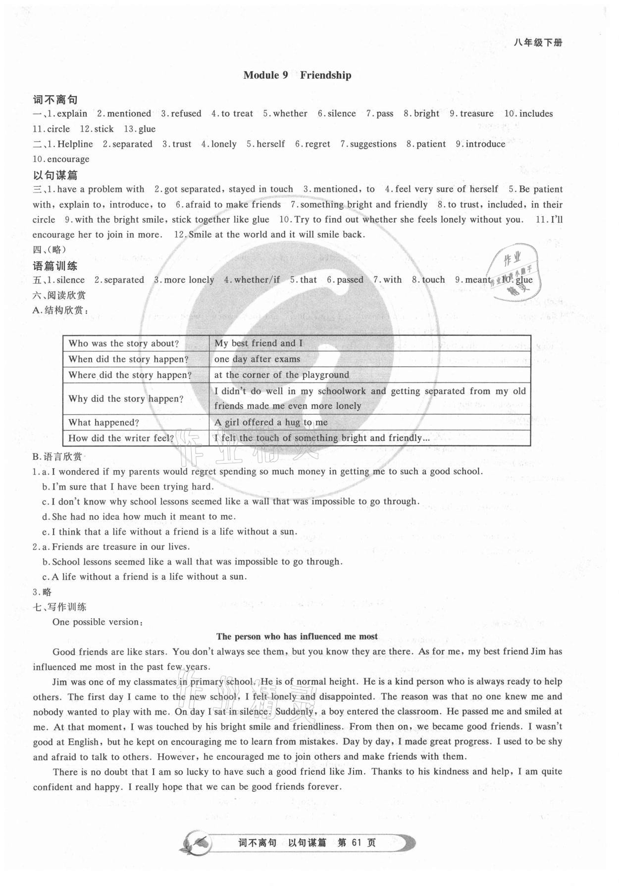 2021年词不离句以句谋篇模块书面表达训练八年级下册