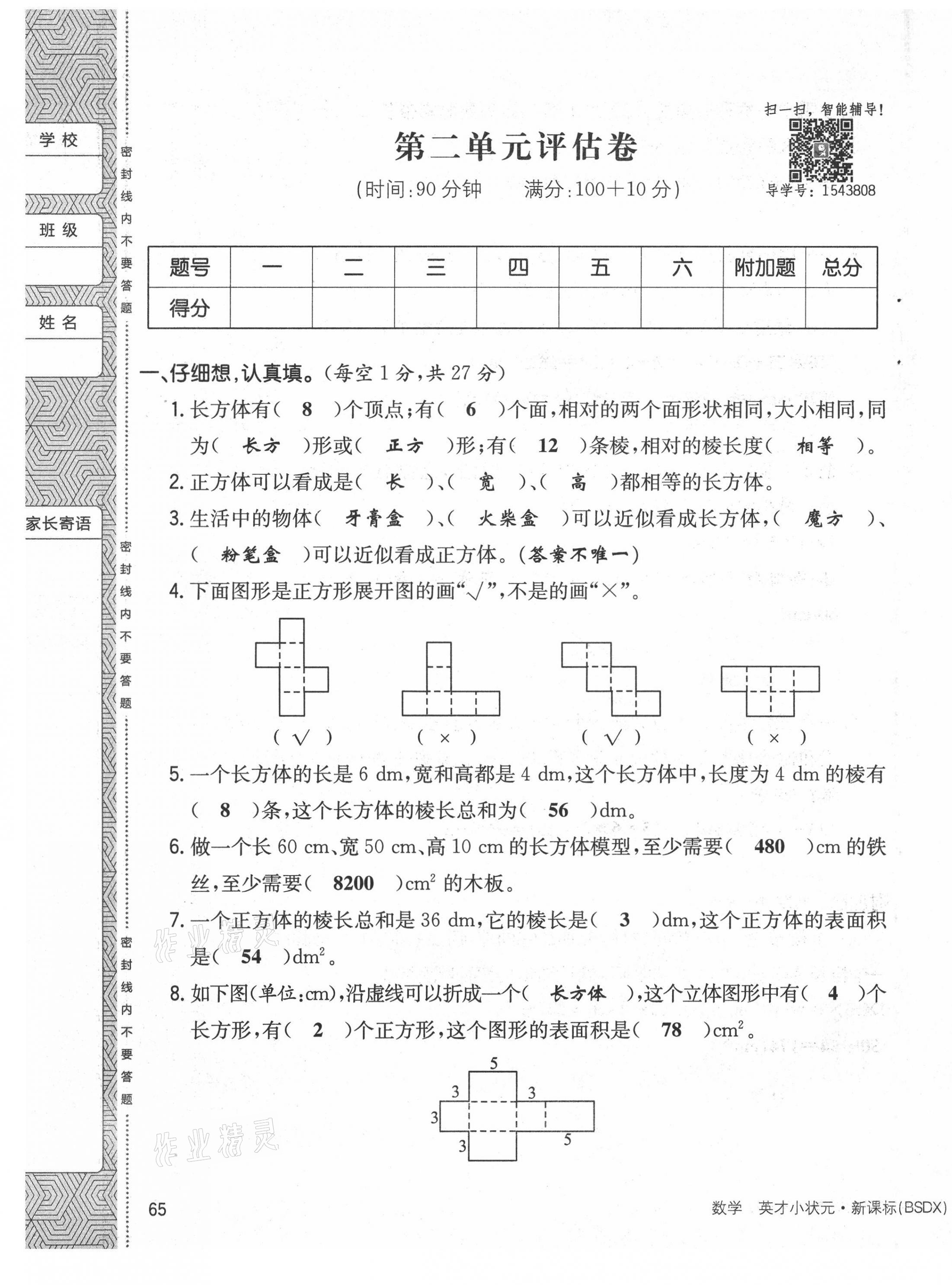 注:目前有些书本章节名称可能整理的还不是很完善,但都是按照顺序排列的,请同学们按照顺序仔细查找。练习册 2021年英才小状元五年级数学下册北师大版 答案主要是用来给同学们做完题方便对答案用的,请勿直接抄袭。