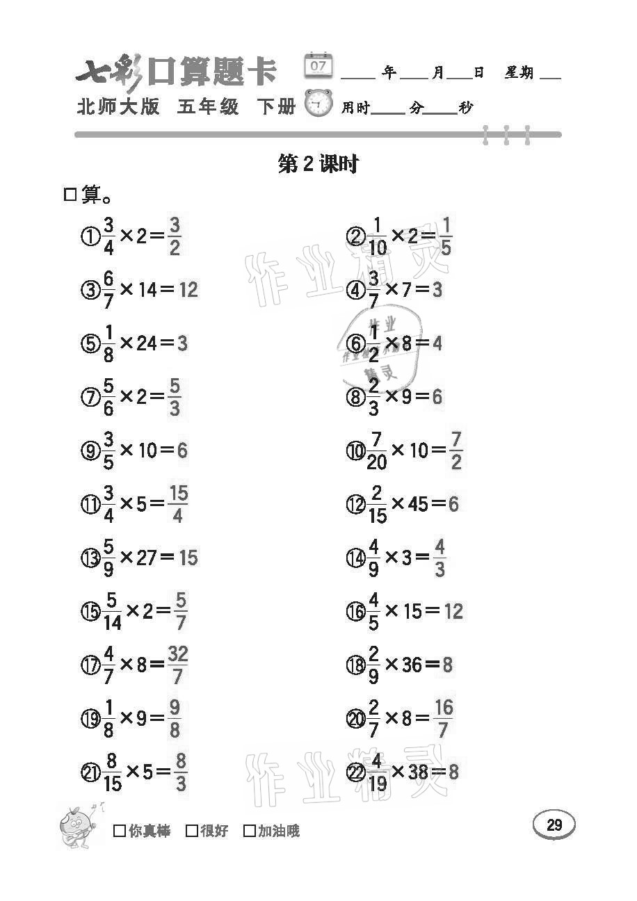 注:目前有些书本章节名称可能整理的还不是很完善,但都是按照顺序排列的,请同学们按照顺序仔细查找。练习册 2021年七彩口算题卡五年级下册北师大版 答案主要是用来给同学们做完题方便对答案用的,请勿直接抄袭。