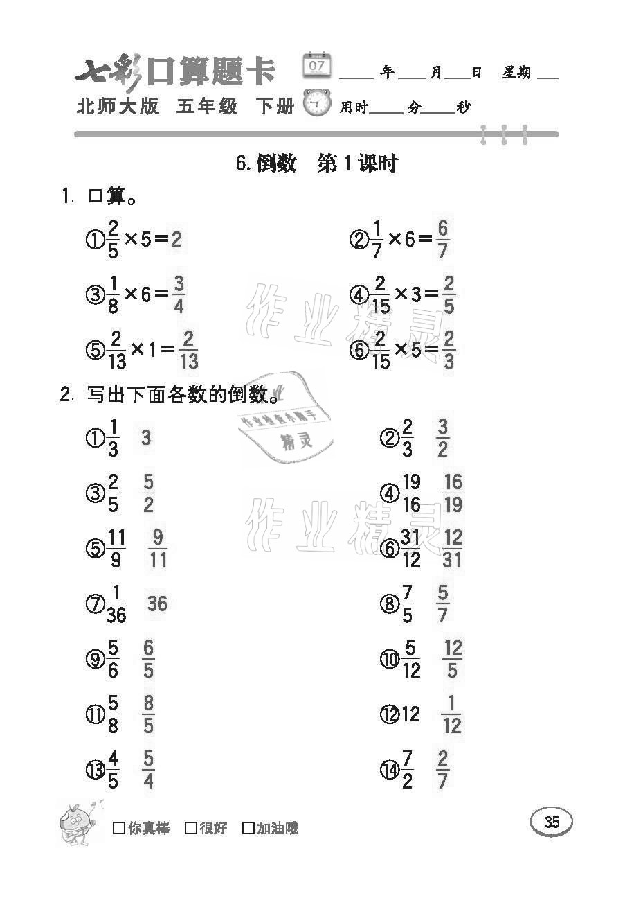注:目前有些书本章节名称可能整理的还不是很完善,但都是按照顺序排列的,请同学们按照顺序仔细查找。练习册 2021年七彩口算题卡五年级下册北师大版 答案主要是用来给同学们做完题方便对答案用的,请勿直接抄袭。