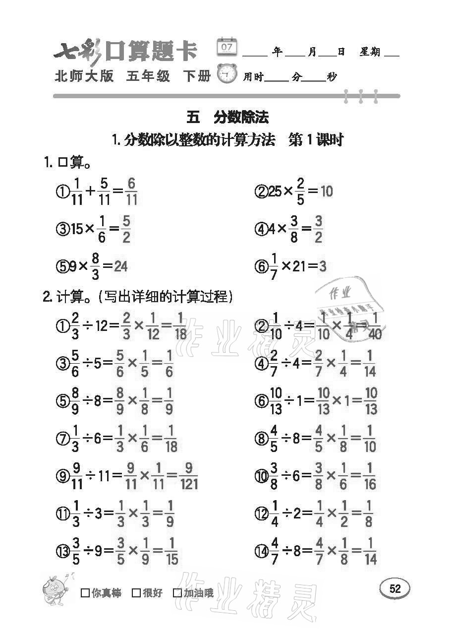 注:目前有些书本章节名称可能整理的还不是很完善,但都是按照顺序排列的,请同学们按照顺序仔细查找。练习册 2021年七彩口算题卡五年级下册北师大版 答案主要是用来给同学们做完题方便对答案用的,请勿直接抄袭。