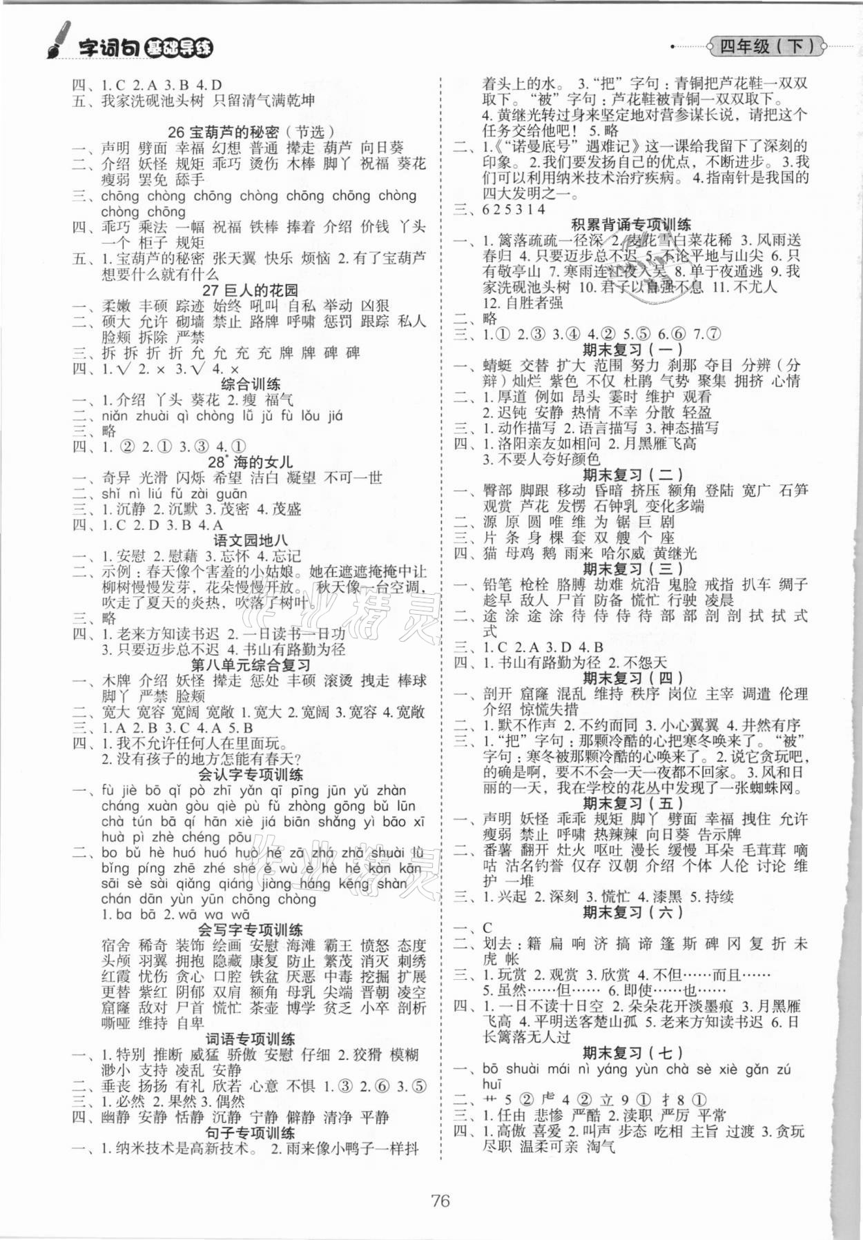 注:目前有些书本章节名称可能整理的还不是很完善,但都是按照顺序排列的,请同学们按照顺序仔细查找。练习册 2021年字词句基础导练四年级下册人教版 答案主要是用来给同学们做完题方便对答案用的,请勿直接抄袭。