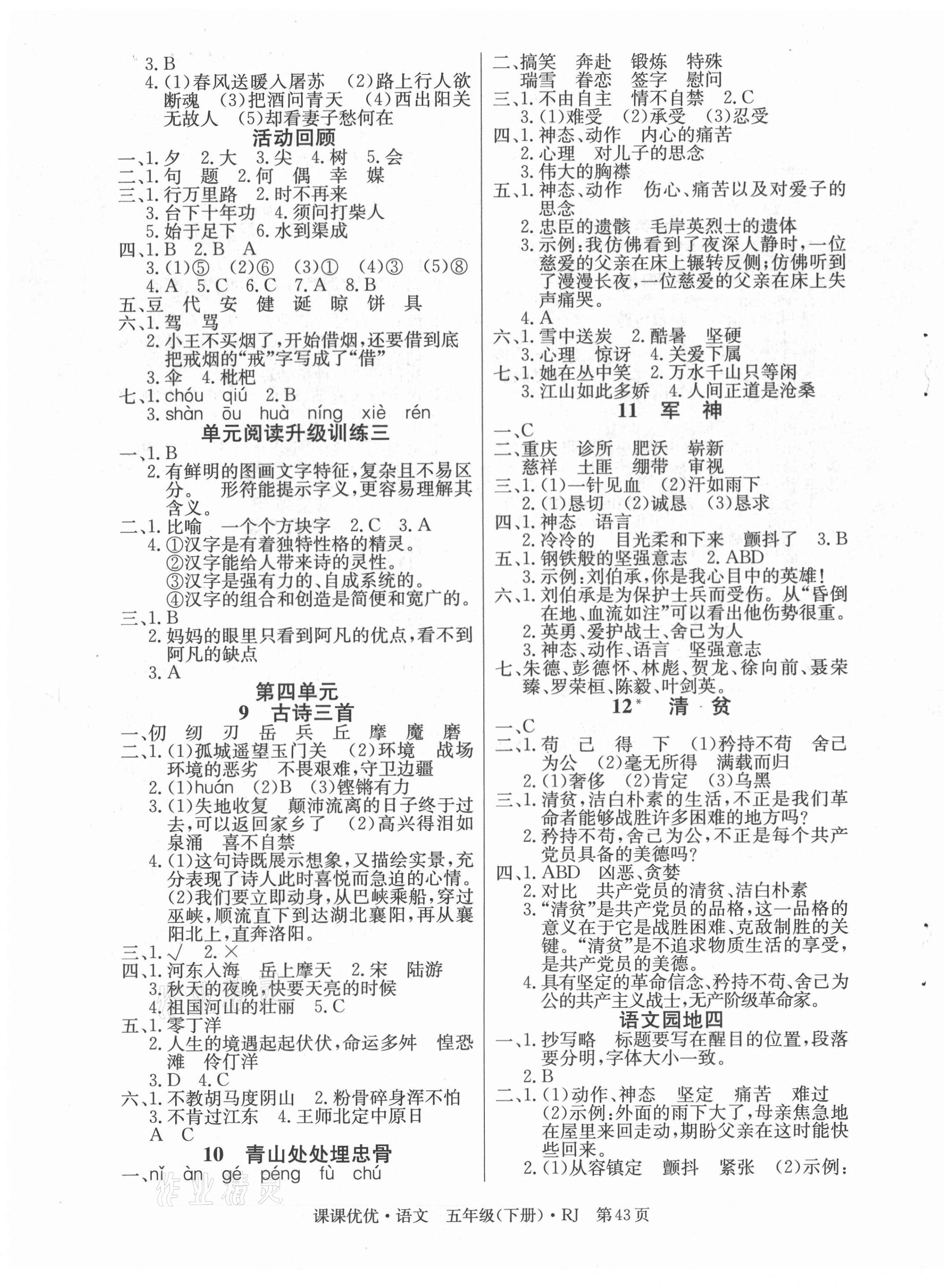 2021年快乐5加2课课优优全班突击五年级语文下册人教版江西专版