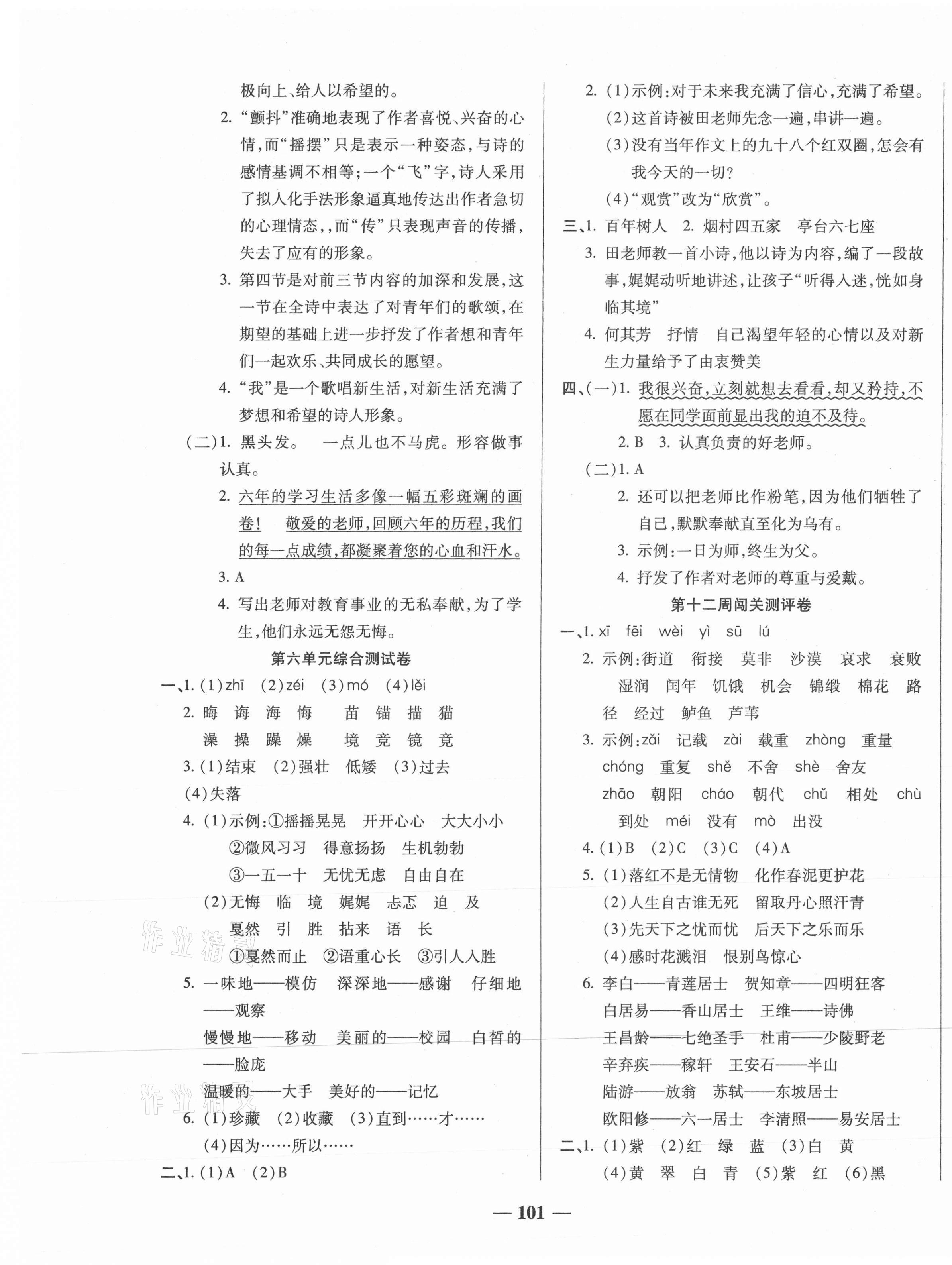 2021年状元大考卷六年级语文下册人教版天津科学技术出版社