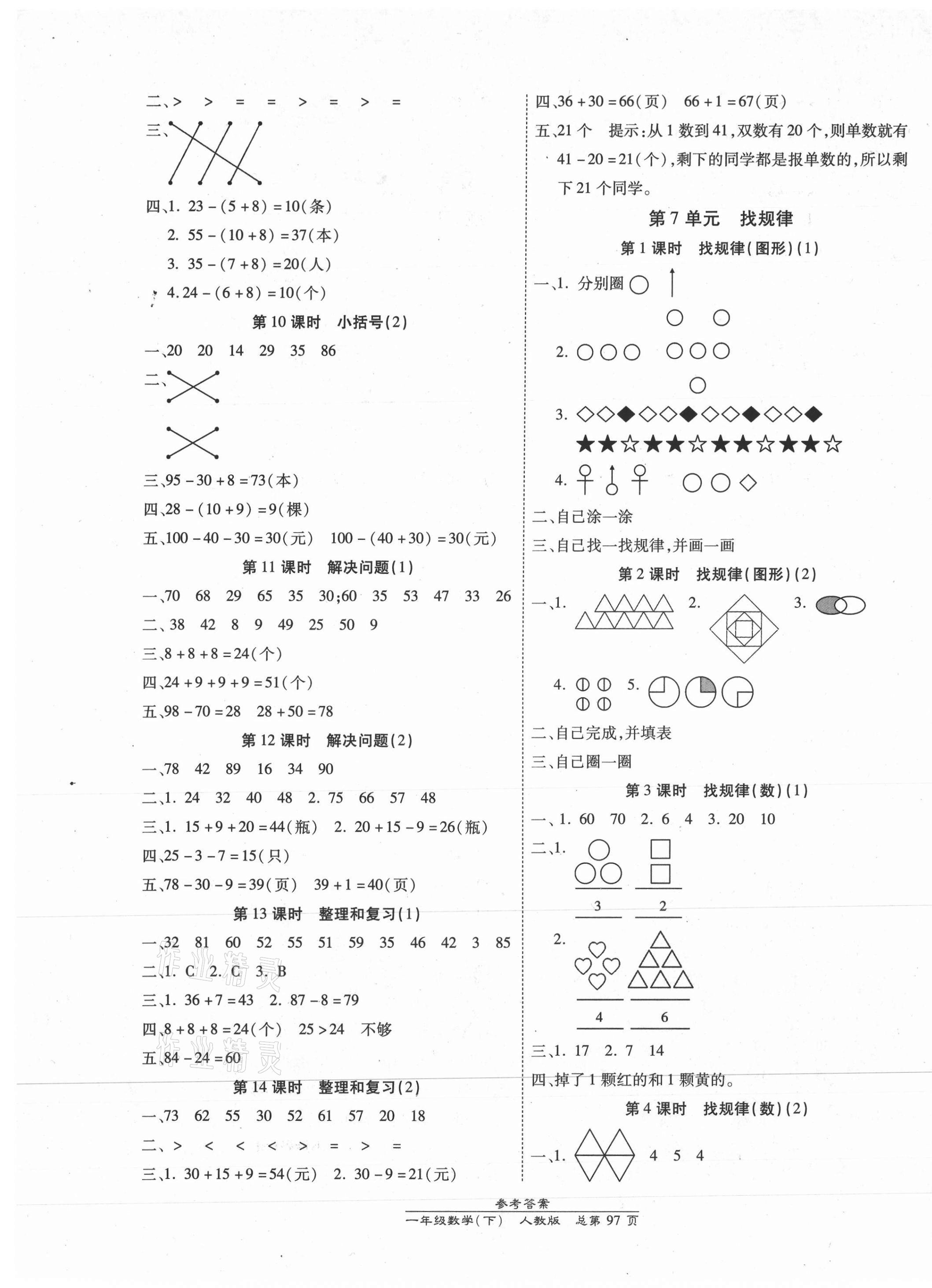 注:目前有些书本章节名称可能整理的还不是很完善,但都是按照顺序排列的,请同学们按照顺序仔细查找。练习册 2021年汇文图书卓越课堂一年级数学下册人教版 答案主要是用来给同学们做完题方便对答案用的,请勿直接抄袭。