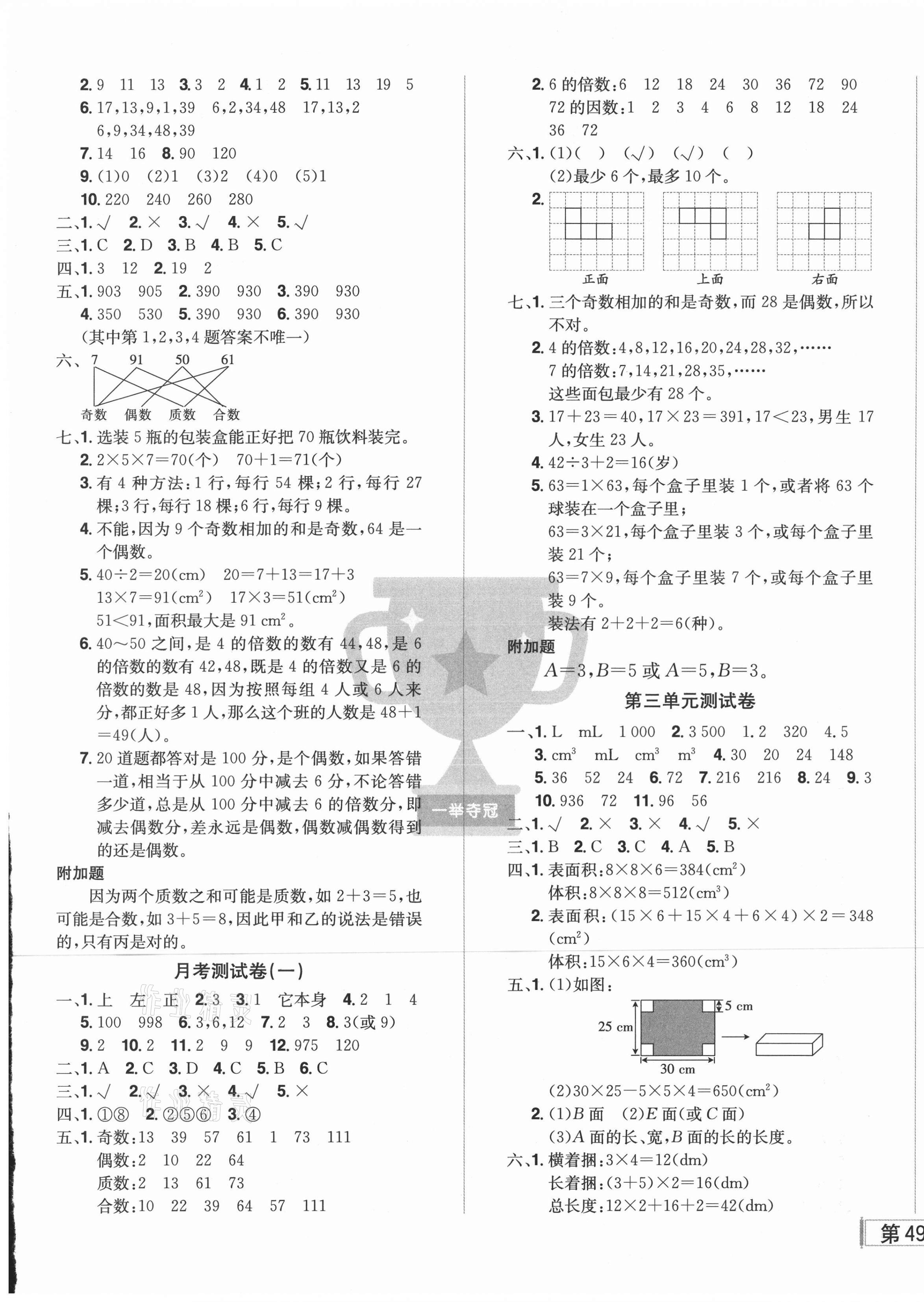 注:目前有些书本章节名称可能整理的还不是很完善,但都是按照顺序排列的,请同学们按照顺序仔细查找。练习册 2021年状元郎小学同步测试卷五年级数学下册人教版 答案主要是用来给同学们做完题方便对答案用的,请勿直接抄袭。