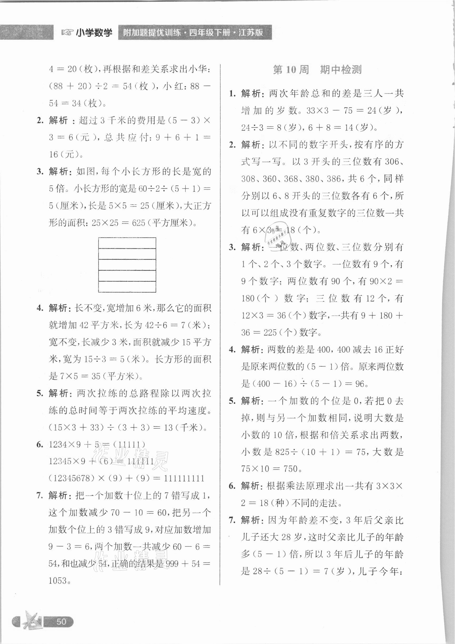 2021年超能学典小学数学附加题提优训练四年级下册江苏版