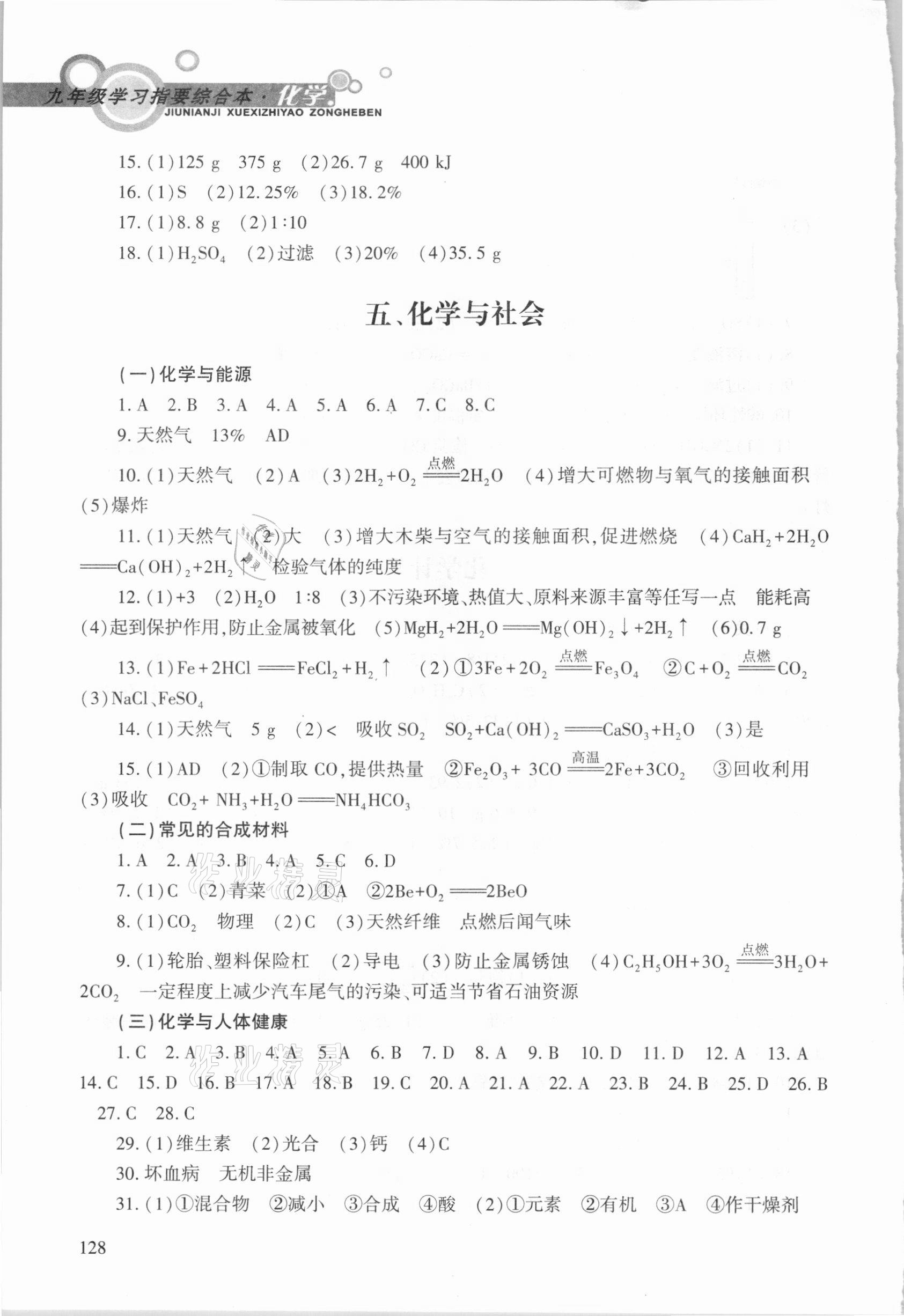 注:目前有些书本章节名称可能整理的还不是很完善,但都是按照顺序排列的,请同学们按照顺序仔细查找。练习册 2021年学习指要综合本九年级化学人教版 答案主要是用来给同学们做完题方便对答案用的,请勿直接抄袭。