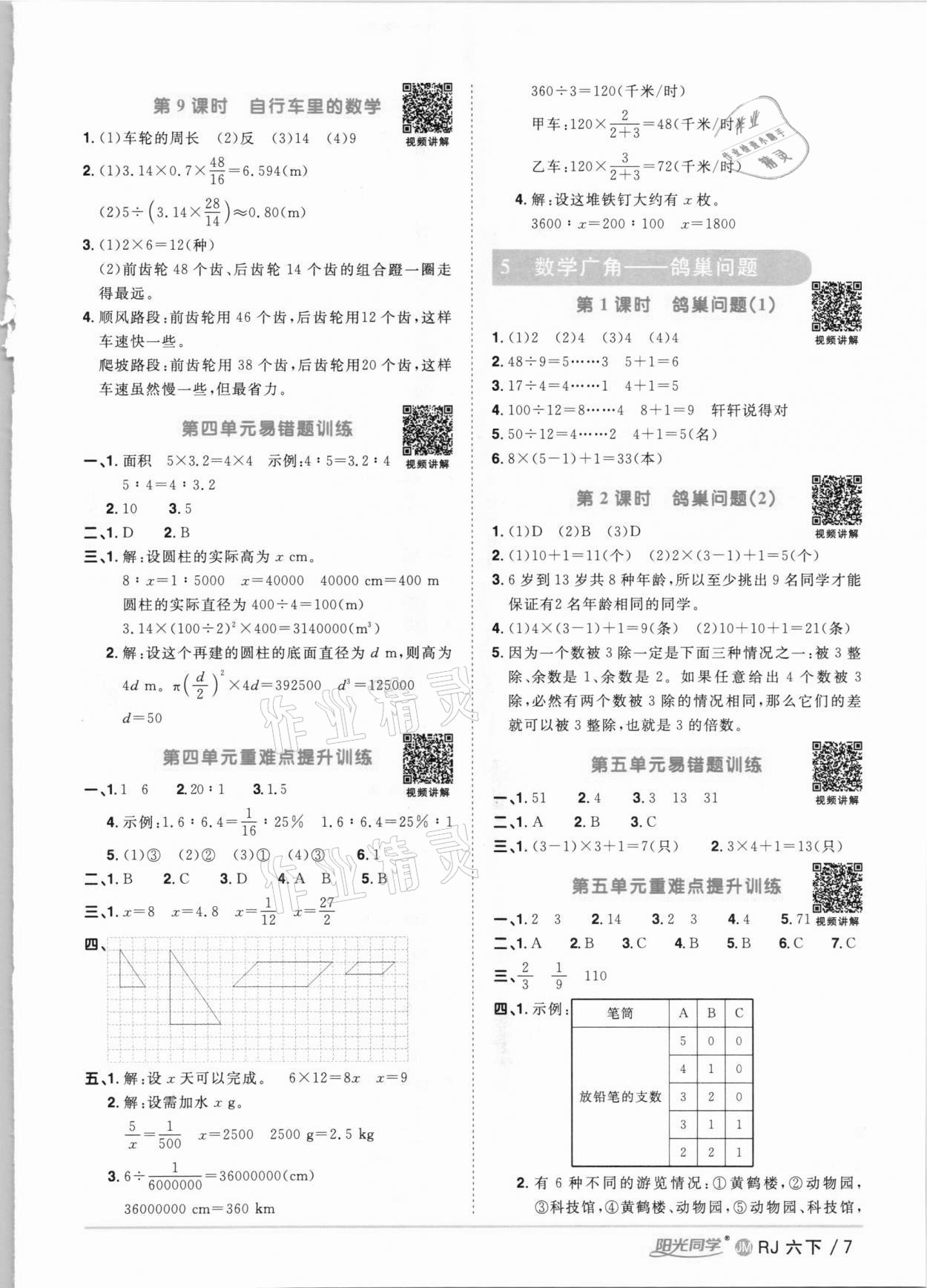 注:目前有些书本章节名称可能整理的还不是很完善,但都是按照顺序排列的,请同学们按照顺序仔细查找。练习册 2021年阳光同学课时优化作业六年级数学下册人教版江门专版 答案主要是用来给同学们做完题方便对答案用的,请勿直接抄袭。