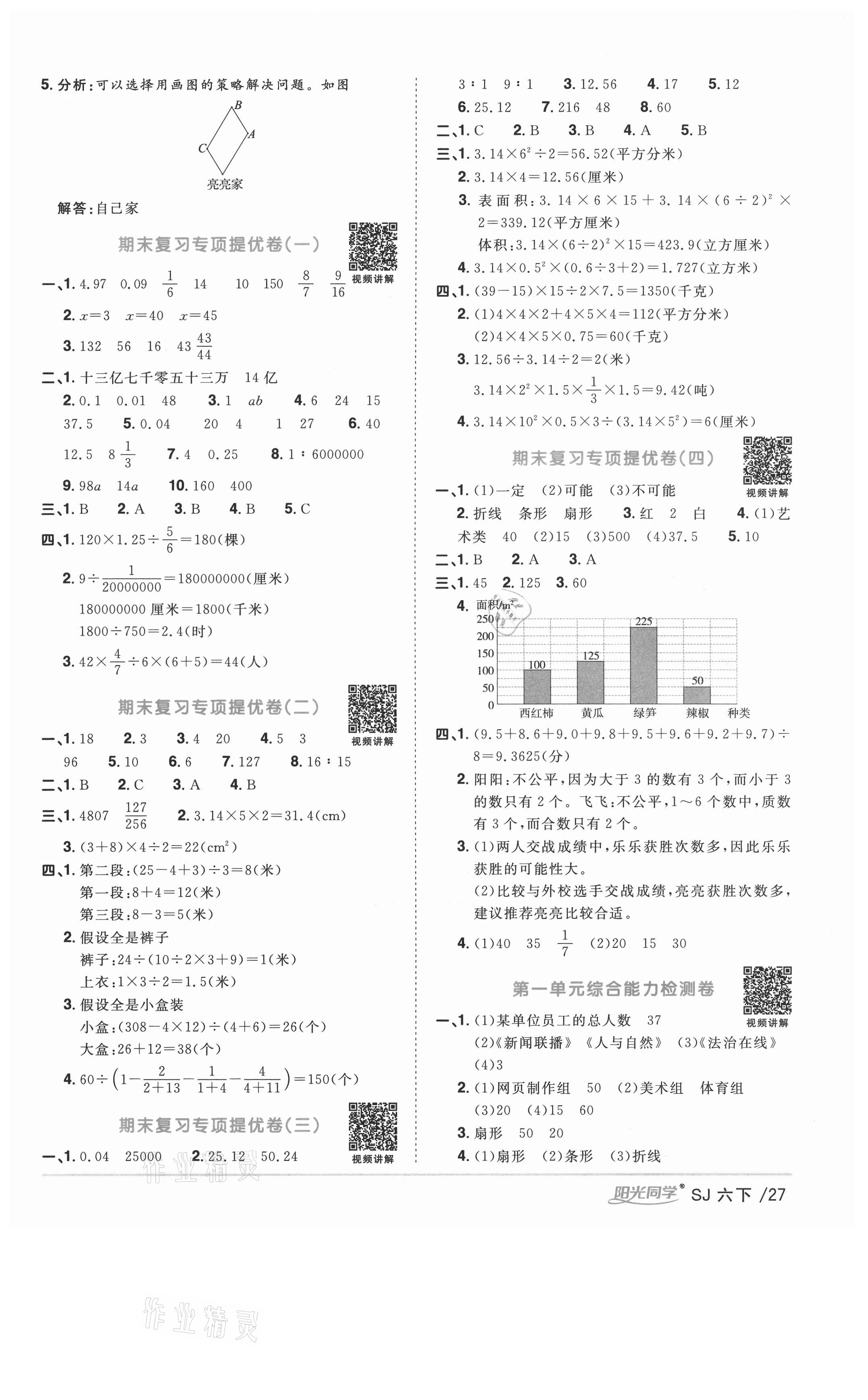 注:目前有些书本章节名称可能整理的还不是很完善,但都是按照顺序排列的,请同学们按照顺序仔细查找。练习册 2021年阳光同学课时优化作业六年级数学下册苏教版淮宿连专版 答案主要是用来给同学们做完题方便对答案用的,请勿直接抄袭。