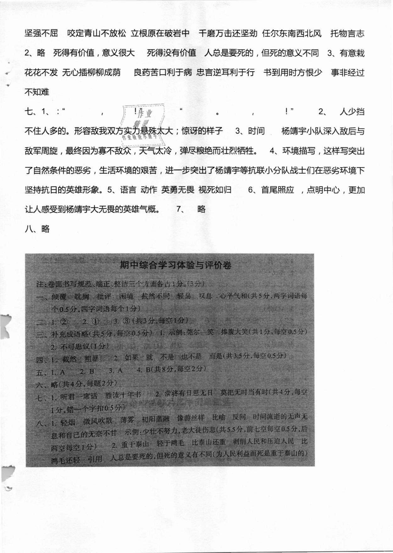 注:目前有些书本章节名称可能整理的还不是很完善,但都是按照顺序排列的,请同学们按照顺序仔细查找。练习册 2021年单元学习体验与评价六年级语文下册人教版 答案主要是用来给同学们做完题方便对答案用的,请勿直接抄袭。
