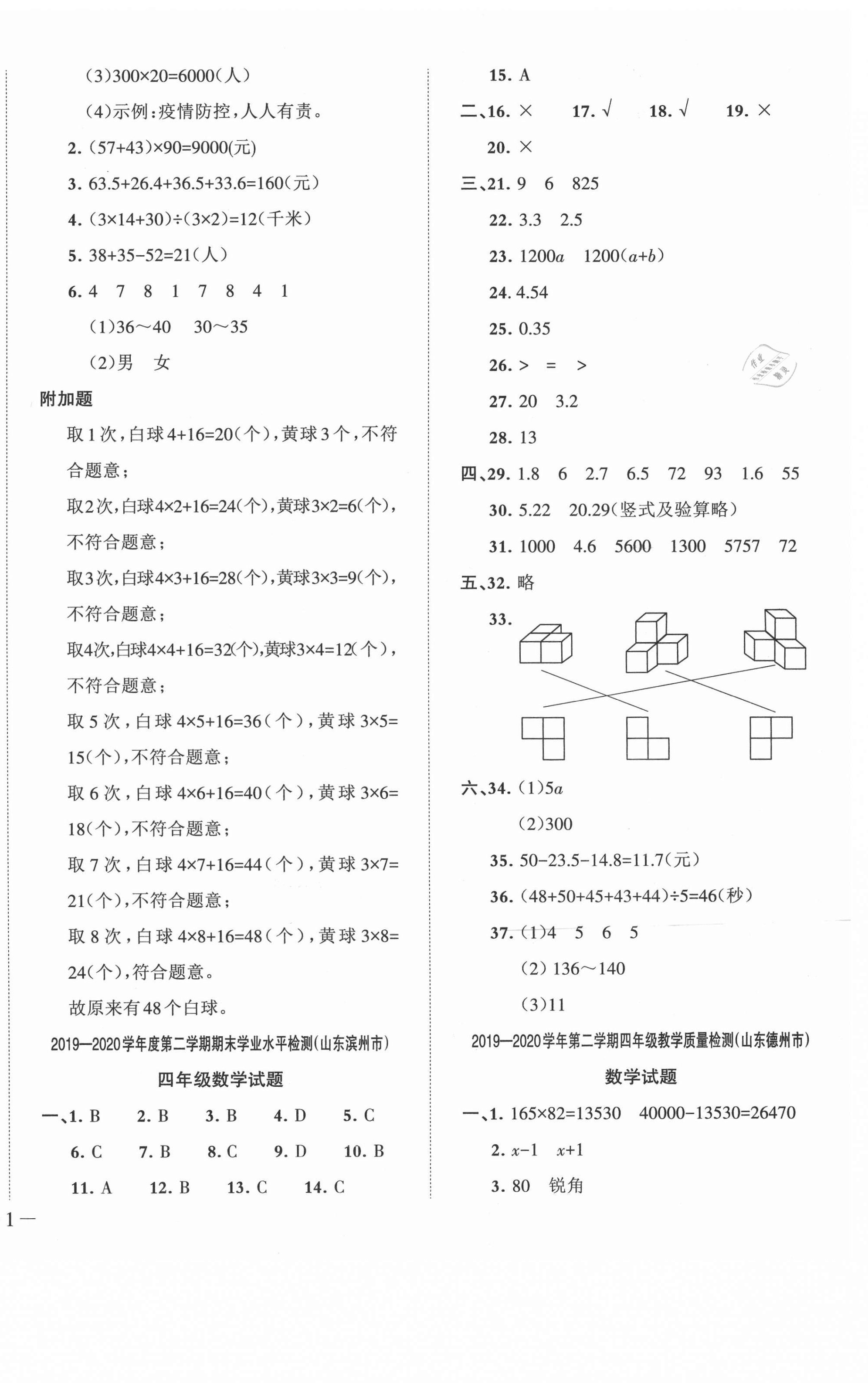 注:目前有些书本章节名称可能整理的还不是很完善,但都是按照顺序排列的,请同学们按照顺序仔细查找。练习册 2021年全优单元大卷四年级数学下册青岛版 答案主要是用来给同学们做完题方便对答案用的,请勿直接抄袭。