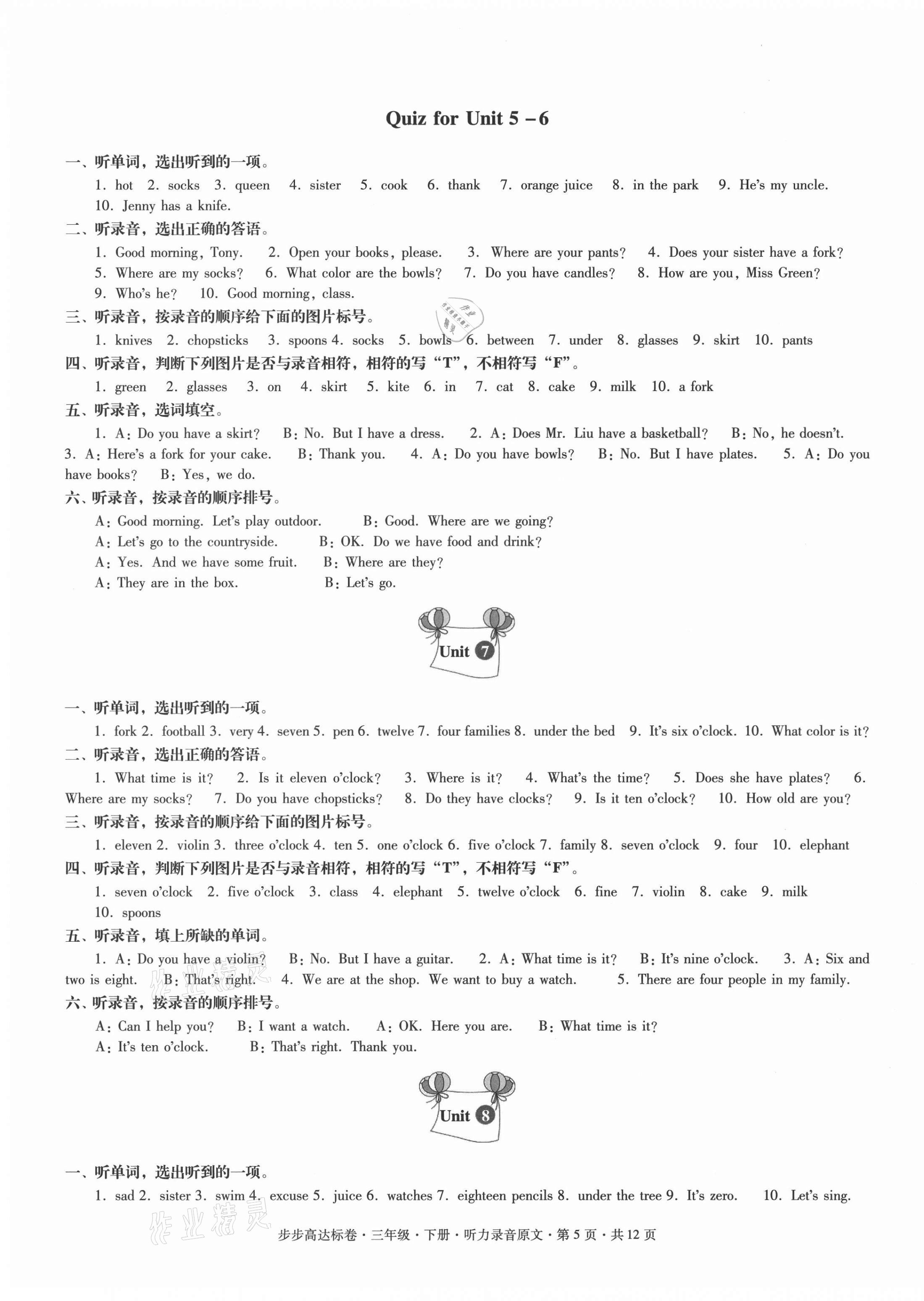 注:目前有些书本章节名称可能整理的还不是很完善,但都是按照顺序排列的,请同学们按照顺序仔细查找。练习册 2020年步步高达标卷三年级英语下册粤人版 答案主要是用来给同学们做完题方便对答案用的,请勿直接抄袭。