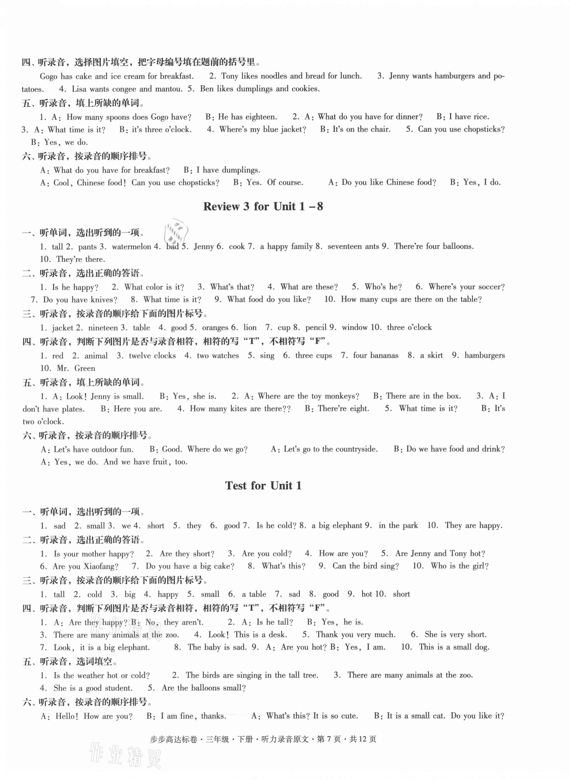 注:目前有些书本章节名称可能整理的还不是很完善,但都是按照顺序排列的,请同学们按照顺序仔细查找。练习册 2020年步步高达标卷三年级英语下册粤人版 答案主要是用来给同学们做完题方便对答案用的,请勿直接抄袭。