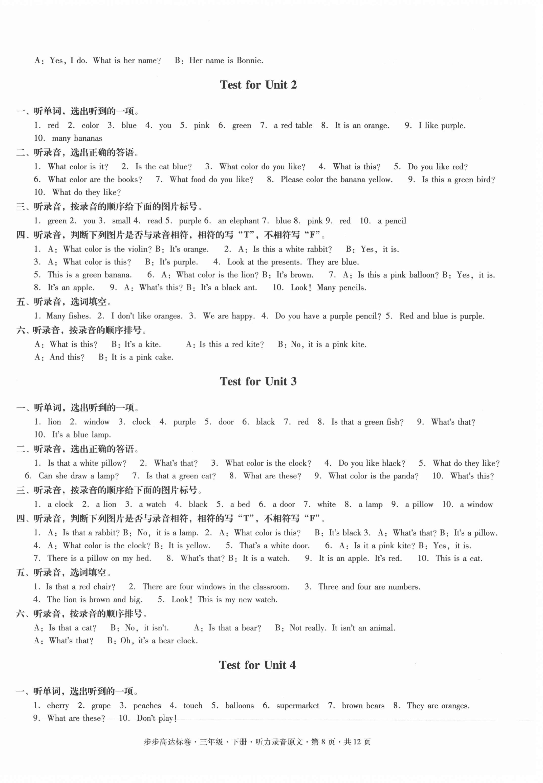 注:目前有些书本章节名称可能整理的还不是很完善,但都是按照顺序排列的,请同学们按照顺序仔细查找。练习册 2020年步步高达标卷三年级英语下册粤人版 答案主要是用来给同学们做完题方便对答案用的,请勿直接抄袭。