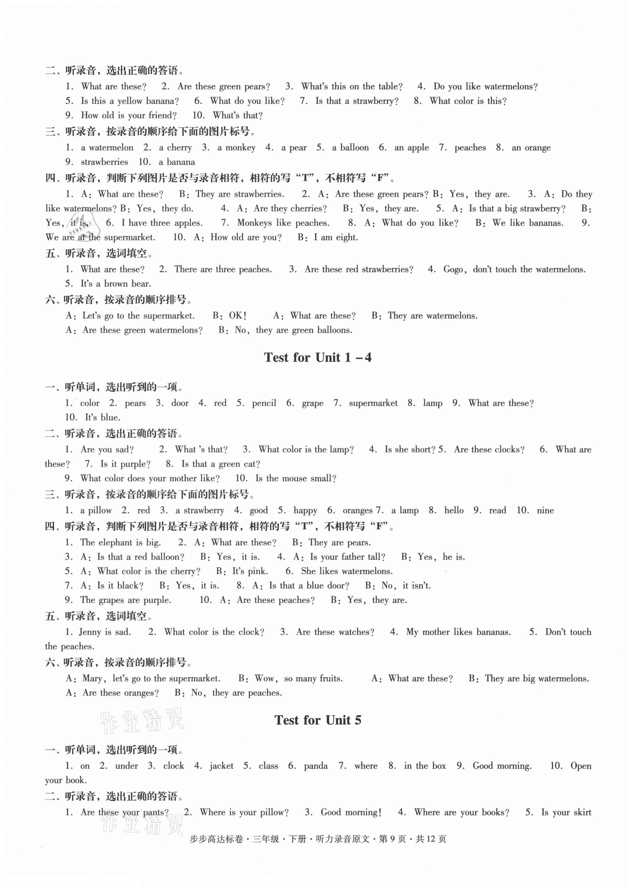 注:目前有些书本章节名称可能整理的还不是很完善,但都是按照顺序排列的,请同学们按照顺序仔细查找。练习册 2020年步步高达标卷三年级英语下册粤人版 答案主要是用来给同学们做完题方便对答案用的,请勿直接抄袭。