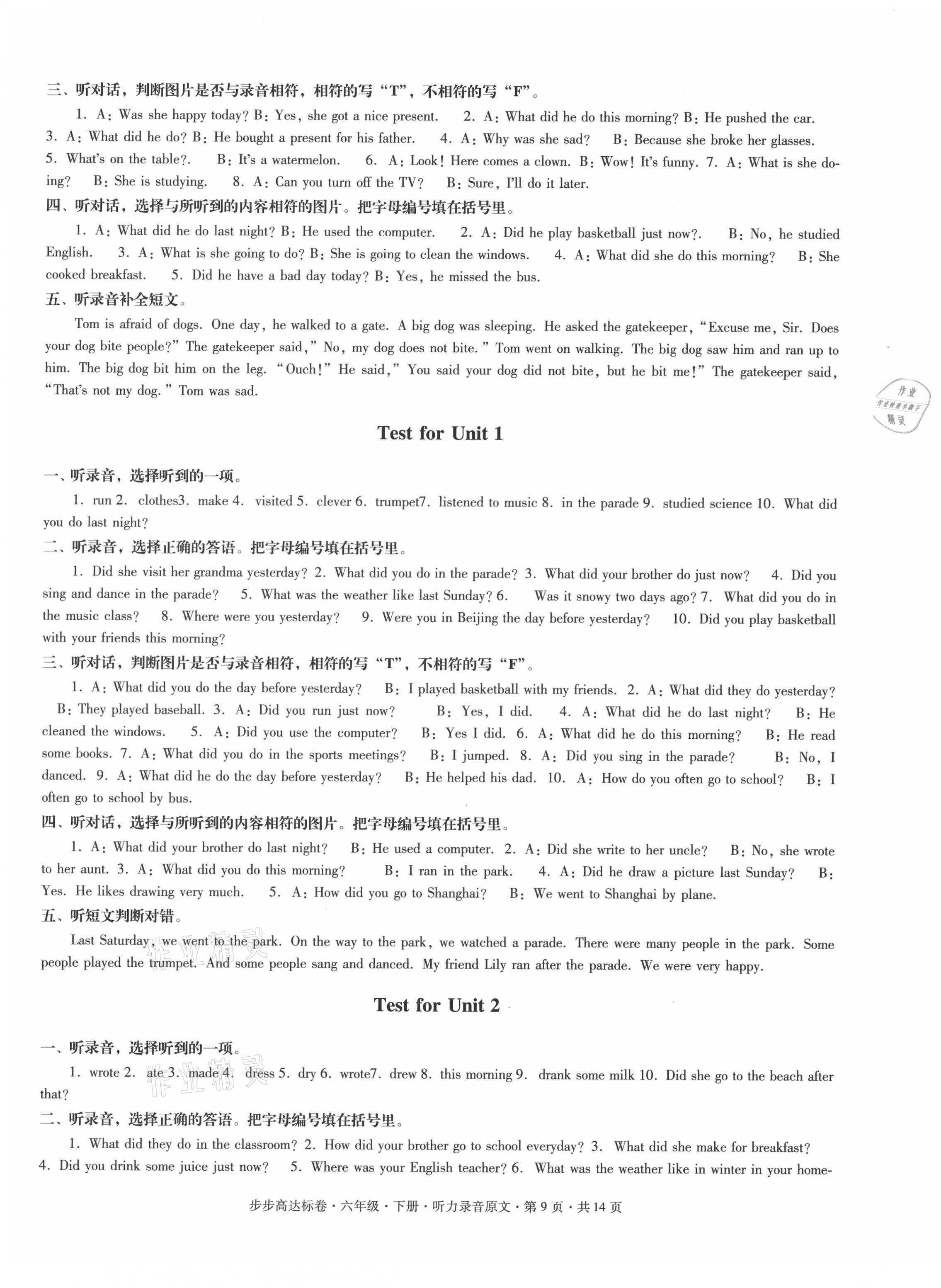 注:目前有些书本章节名称可能整理的还不是很完善,但都是按照顺序排列的,请同学们按照顺序仔细查找。练习册 2021年步步高达标卷六年级英语下册粤人民版 答案主要是用来给同学们做完题方便对答案用的,请勿直接抄袭。