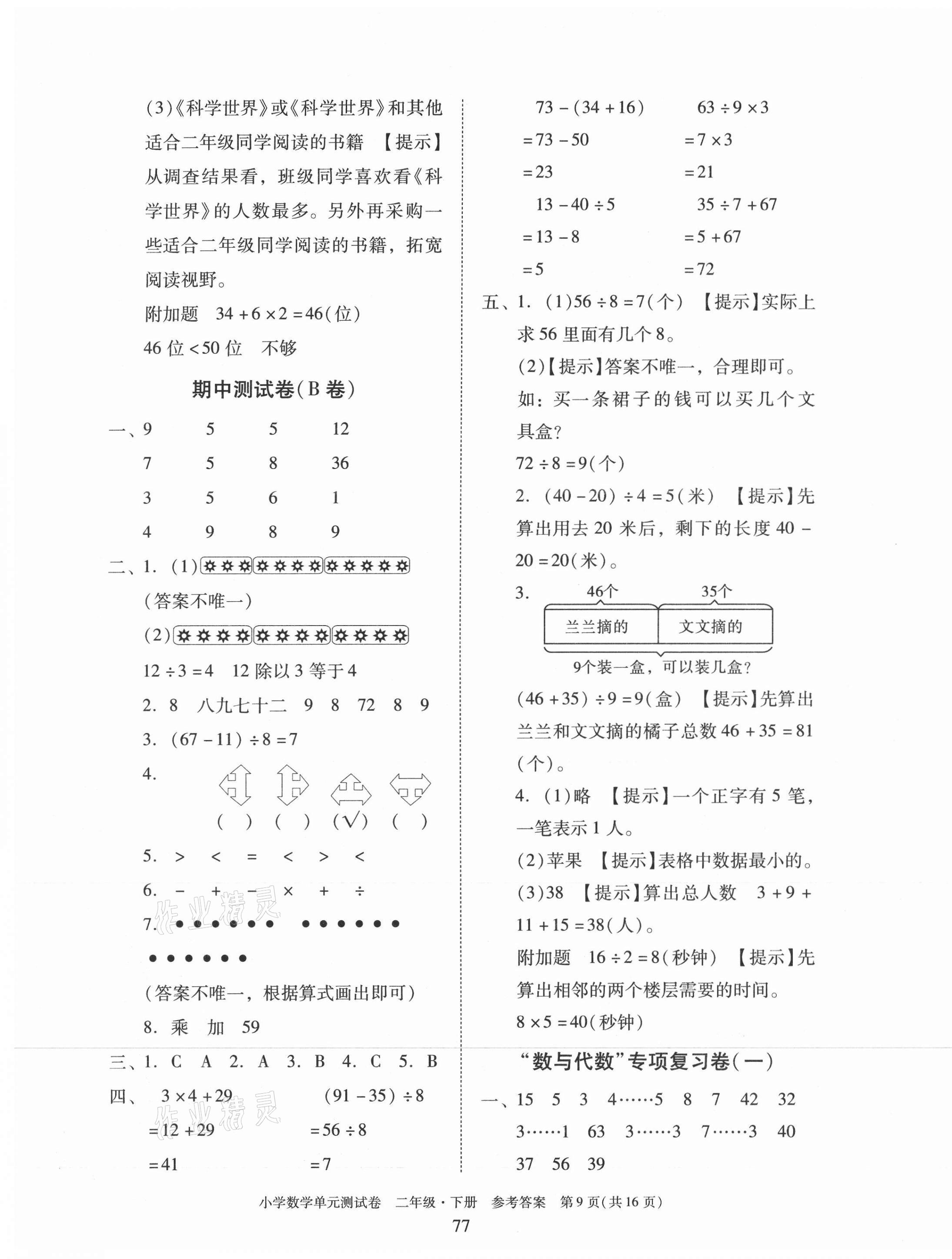 注:目前有些书本章节名称可能整理的还不是很完善,但都是按照顺序排列的,请同学们按照顺序仔细查找。练习册 2021年小学数学单元测试卷二年级下册人教版 答案主要是用来给同学们做完题方便对答案用的,请勿直接抄袭。