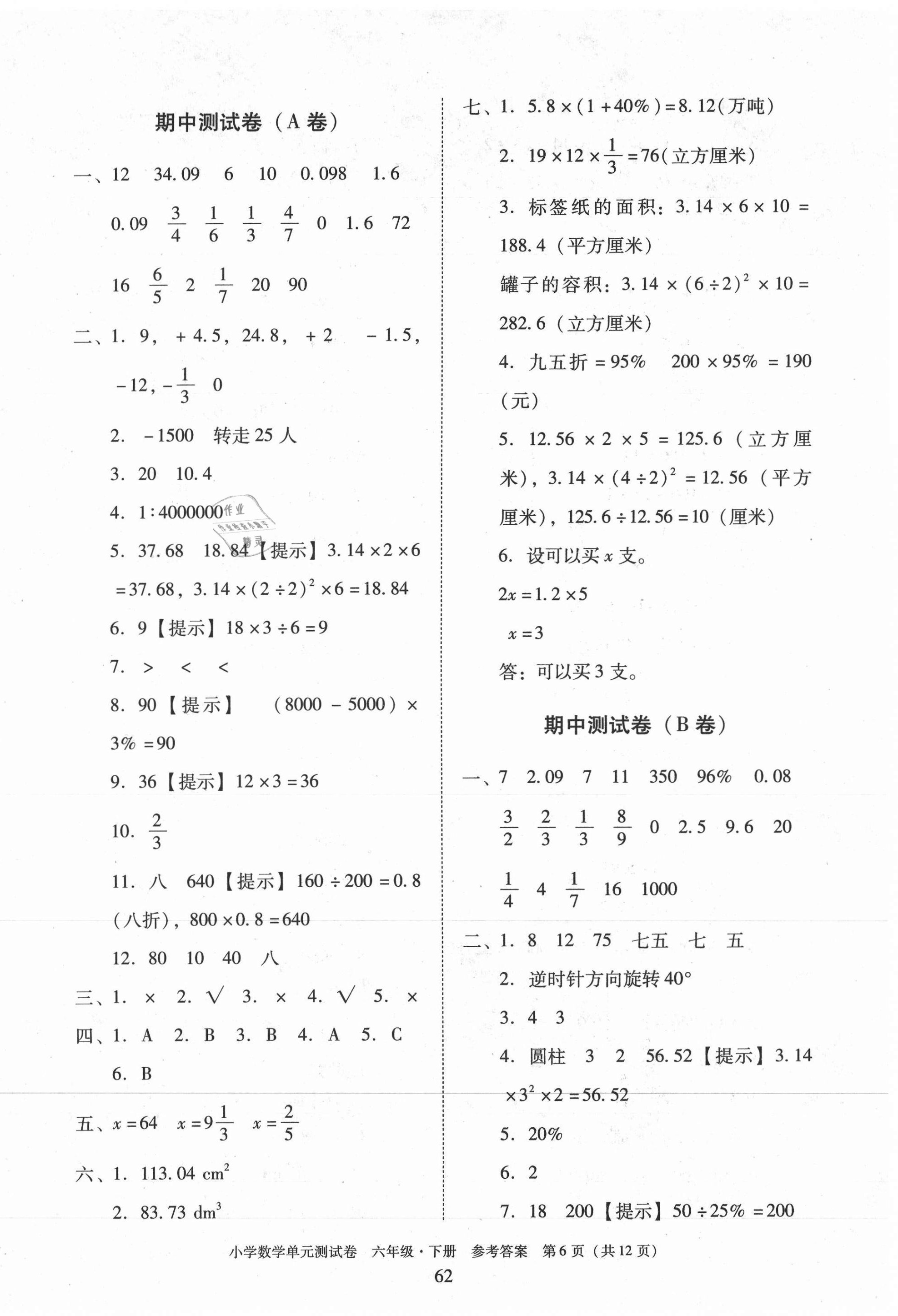 注:目前有些书本章节名称可能整理的还不是很完善,但都是按照顺序排列的,请同学们按照顺序仔细查找。练习册 2021年小学数学单元测试卷六年级下册人教版 答案主要是用来给同学们做完题方便对答案用的,请勿直接抄袭。