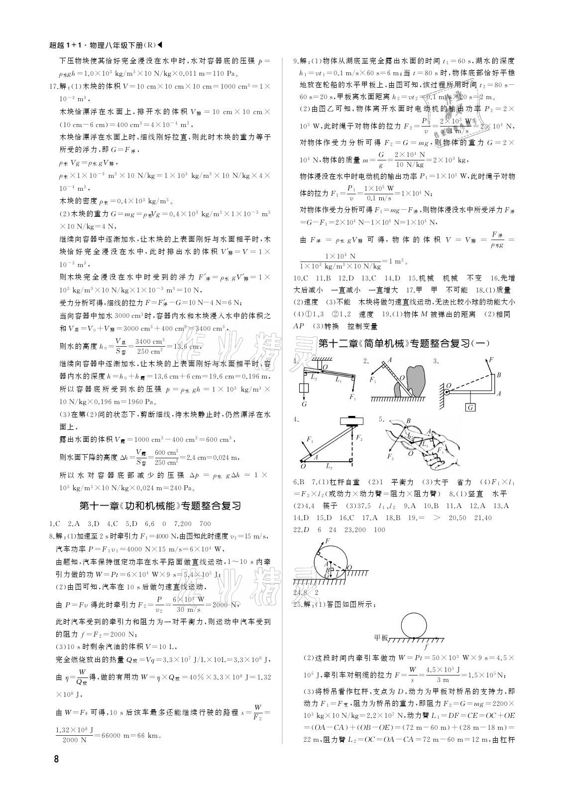 注:目前有些书本章节名称可能整理的还不是很完善,但都是按照顺序排列的,请同学们按照顺序仔细查找。练习册 2021年超越1+1八年级物理下册人教版 答案主要是用来给同学们做完题方便对答案用的,请勿直接抄袭。