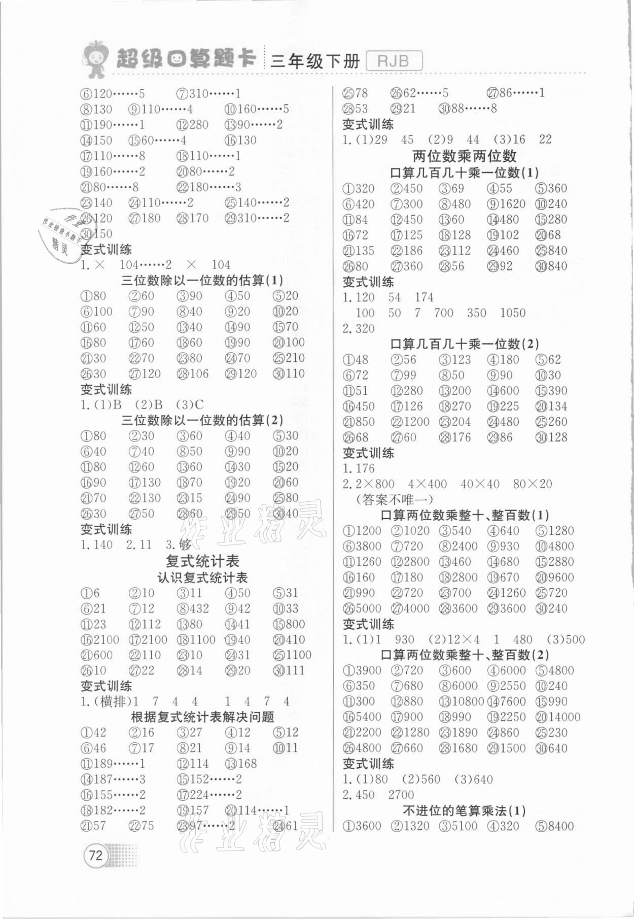 注:目前有些书本章节名称可能整理的还不是很完善,但都是按照顺序排列的,请同学们按照顺序仔细查找。练习册 2021年超级口算题卡三年级数学下册人教版 答案主要是用来给同学们做完题方便对答案用的,请勿直接抄袭。