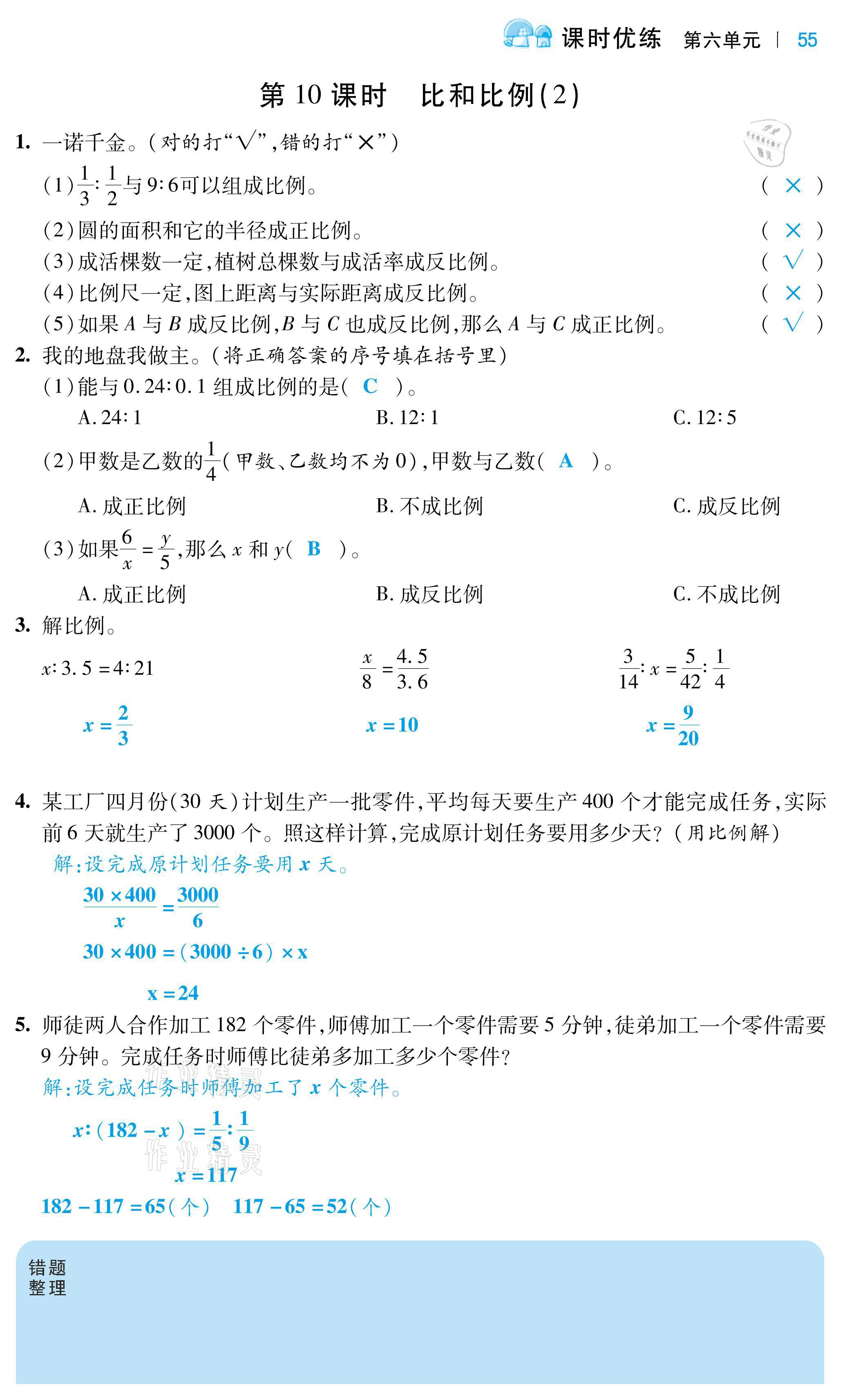 注:目前有些书本章节名称可能整理的还不是很完善,但都是按照顺序排列的,请同学们按照顺序仔细查找。练习册 2021年小学课时优练六年级数学下册人教版 答案主要是用来给同学们做完题方便对答案用的,请勿直接抄袭。