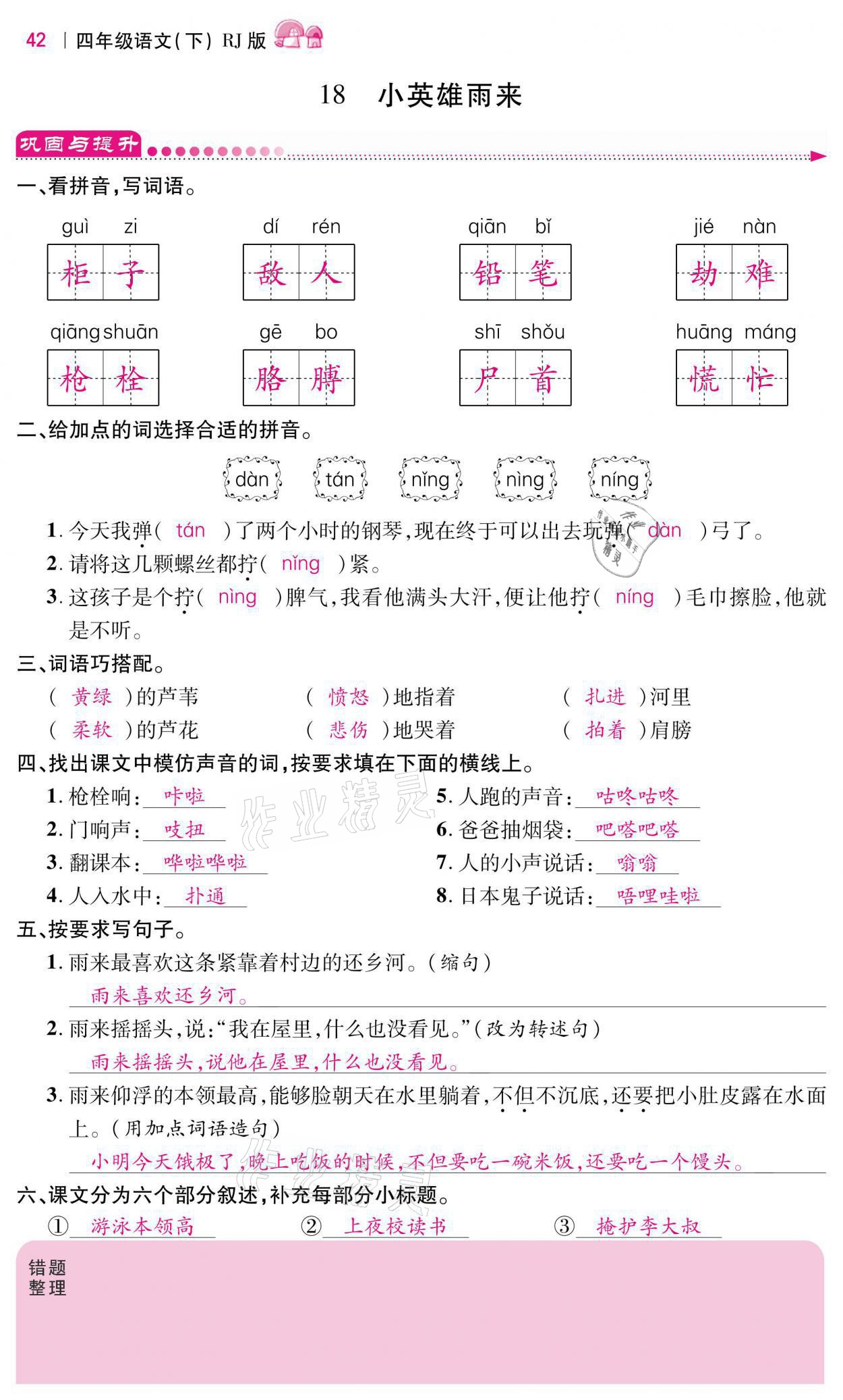 注:目前有些书本章节名称可能整理的还不是很完善,但都是按照顺序排列的,请同学们按照顺序仔细查找。练习册 2021年小学课时优练四年级语文下册人教版 答案主要是用来给同学们做完题方便对答案用的,请勿直接抄袭。