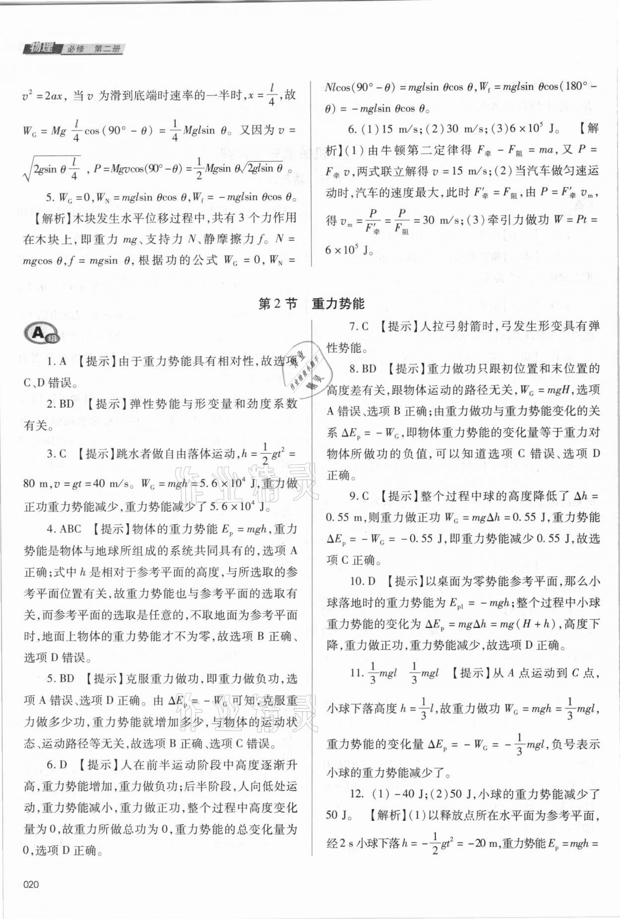 注:目前有些书本章节名称可能整理的还不是很完善,但都是按照顺序排列的,请同学们按照顺序仔细查找。练习册 2021年学习质量监测高中物理必修第二册人教版 答案主要是用来给同学们做完题方便对答案用的,请勿直接抄袭。