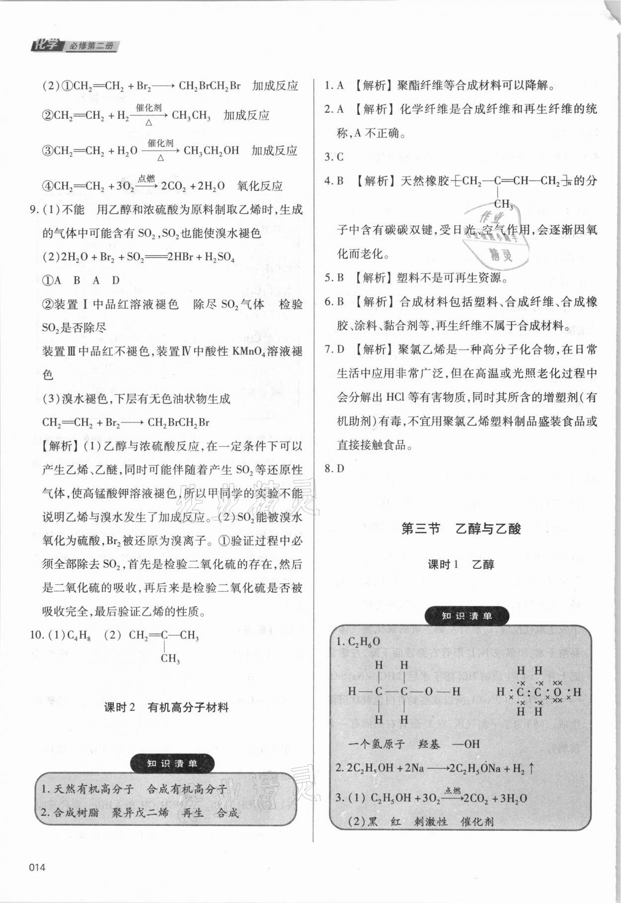 注:目前有些书本章节名称可能整理的还不是很完善,但都是按照顺序排列的,请同学们按照顺序仔细查找。练习册 2021年学习质量监测高中化学必修第二册人教版 答案主要是用来给同学们做完题方便对答案用的,请勿直接抄袭。