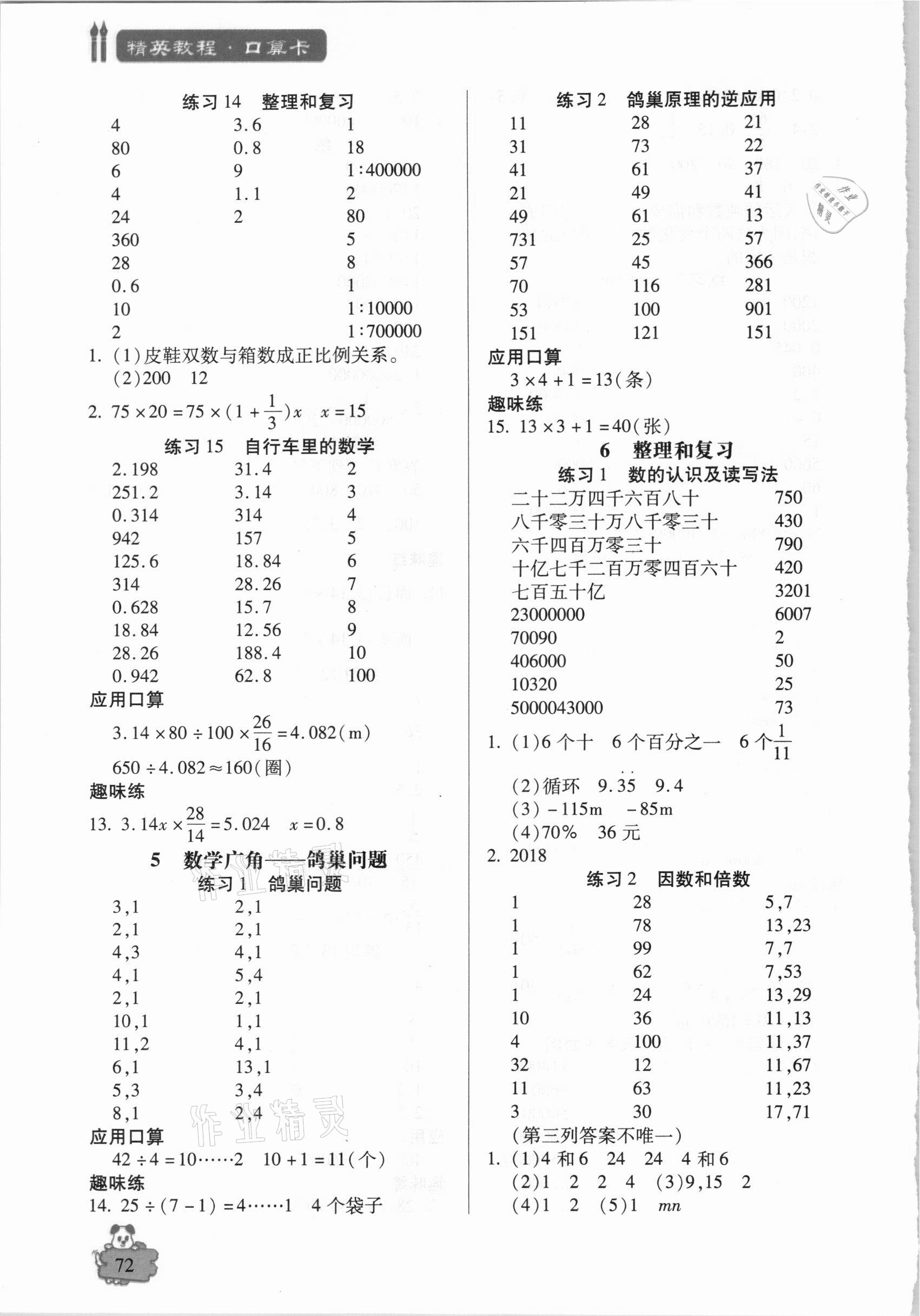 注:目前有些书本章节名称可能整理的还不是很完善,但都是按照顺序排列的,请同学们按照顺序仔细查找。练习册 2021年精英口算卡六年级下册人教版 答案主要是用来给同学们做完题方便对答案用的,请勿直接抄袭。