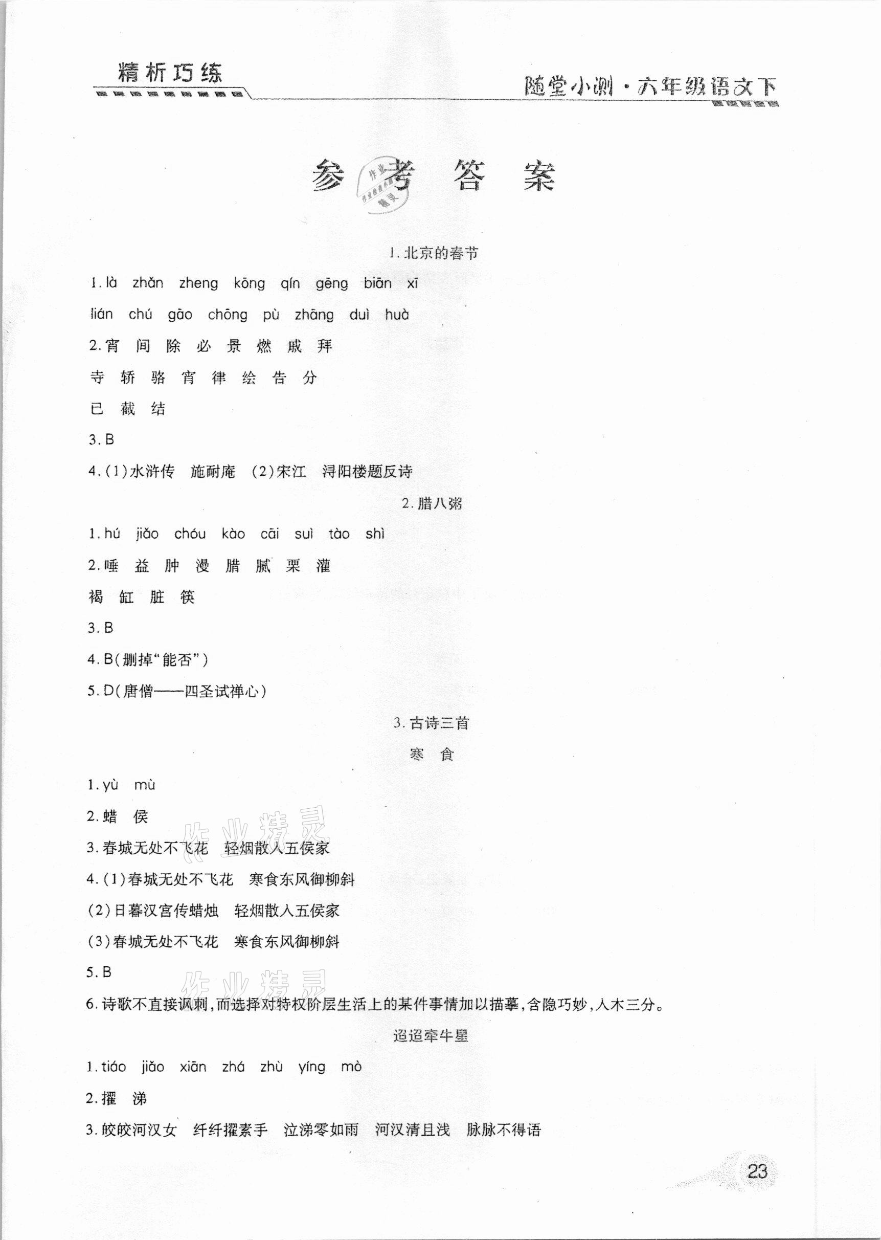 注:目前有些书本章节名称可能整理的还不是很完善,但都是按照顺序排列的,请同学们按照顺序仔细查找。练习册 2021年精析巧练阶段性验收与测试六年级语文下册人教版 答案主要是用来给同学们做完题方便对答案用的,请勿直接抄袭。